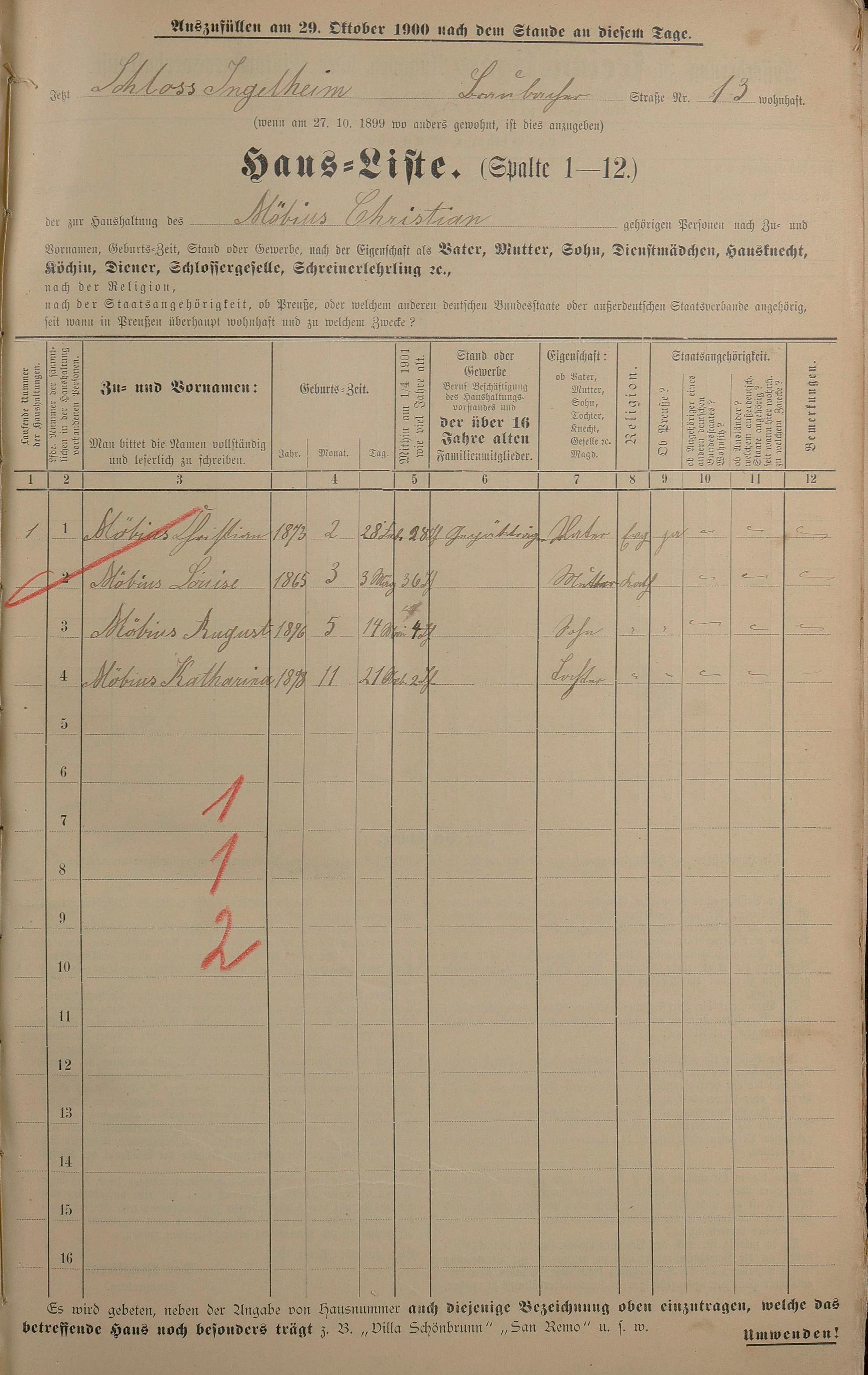 Personenstandsaufnahme zur Klassensteuerrolle für 1901