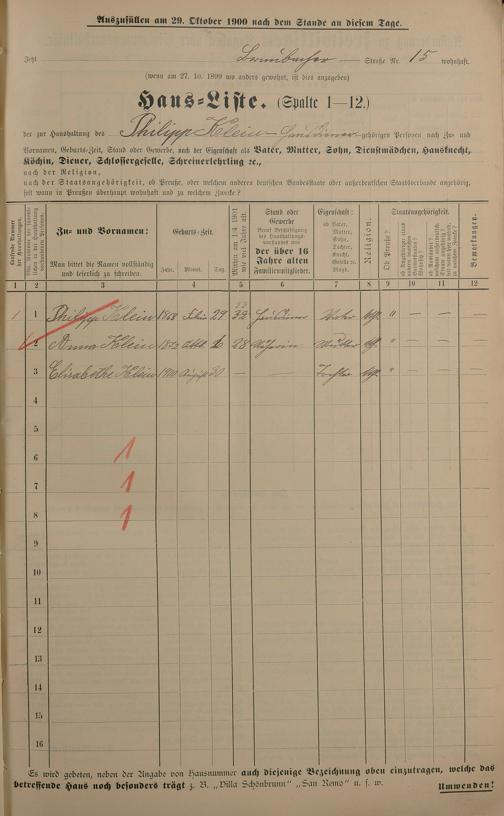Personenstandsaufnahme zur Klassensteuerrolle für 1901