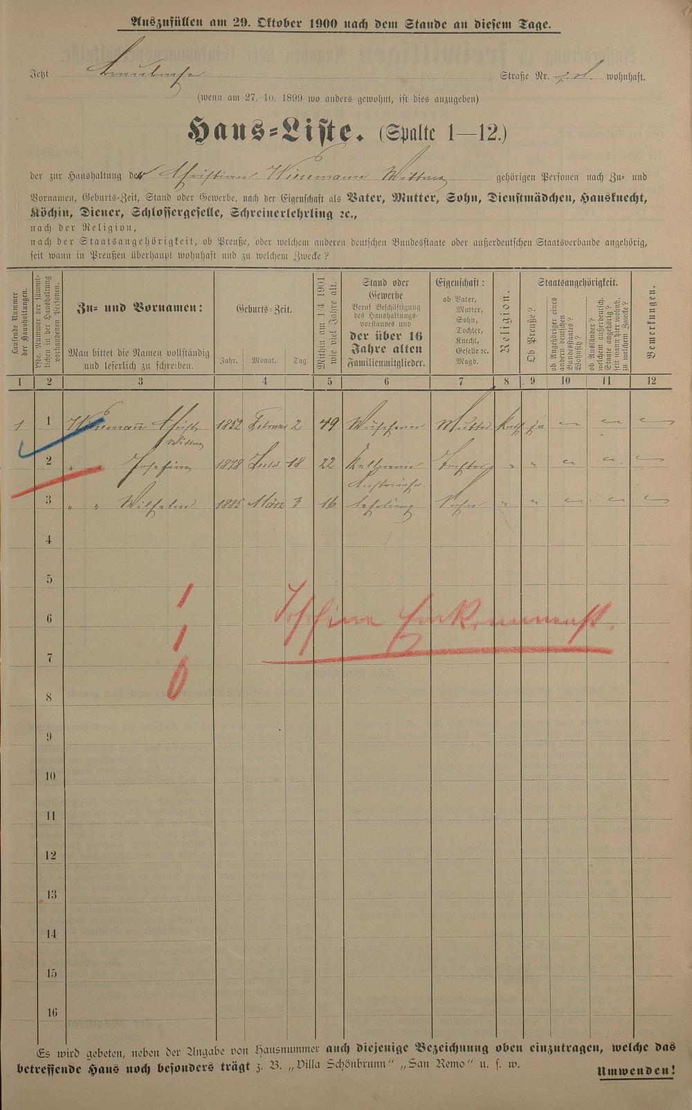 Personenstandsaufnahme zur Klassensteuerrolle für 1901