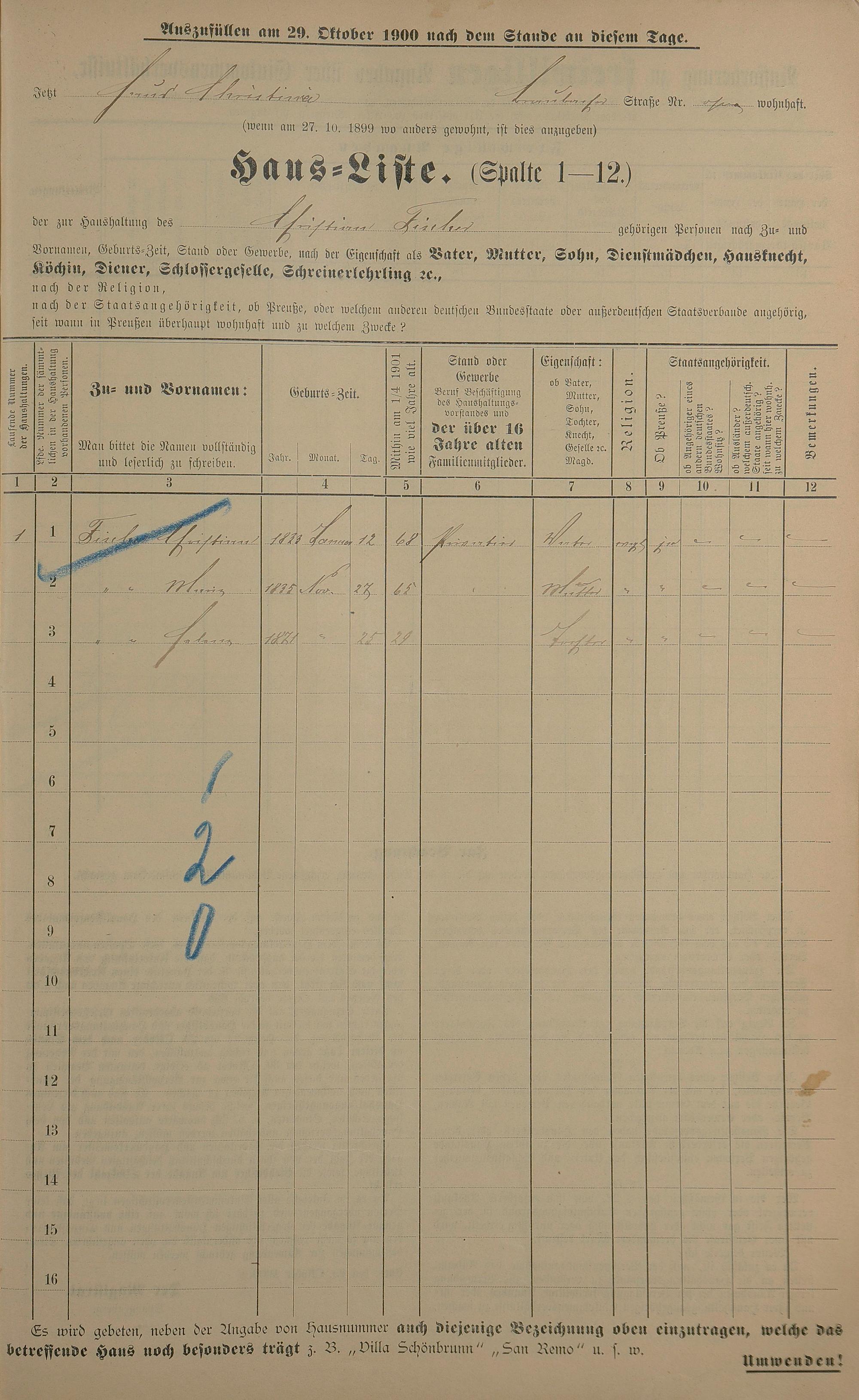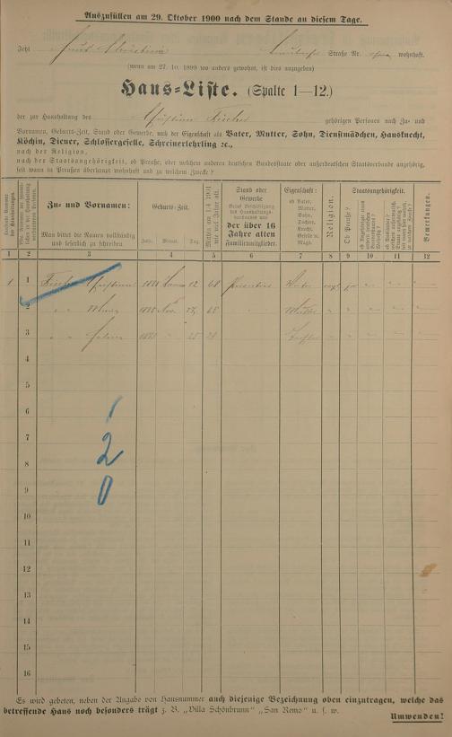 Personenstandsaufnahme zur Klassensteuerrolle für 1901