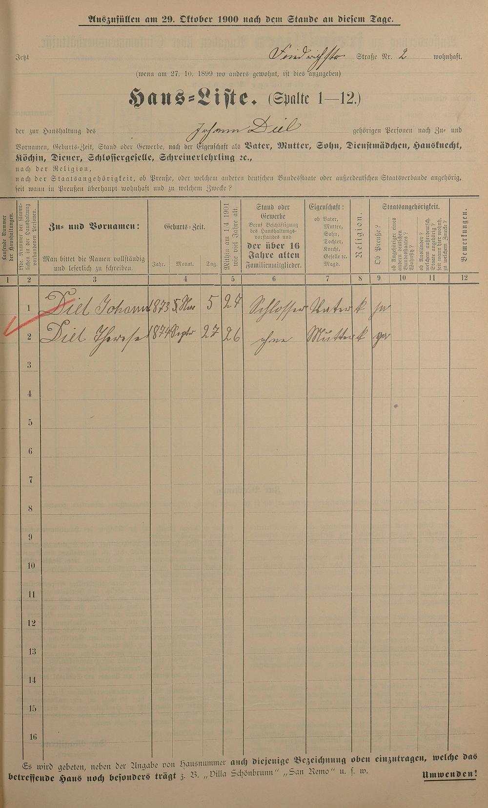 Personenstandsaufnahme zur Klassensteuerrolle für 1901