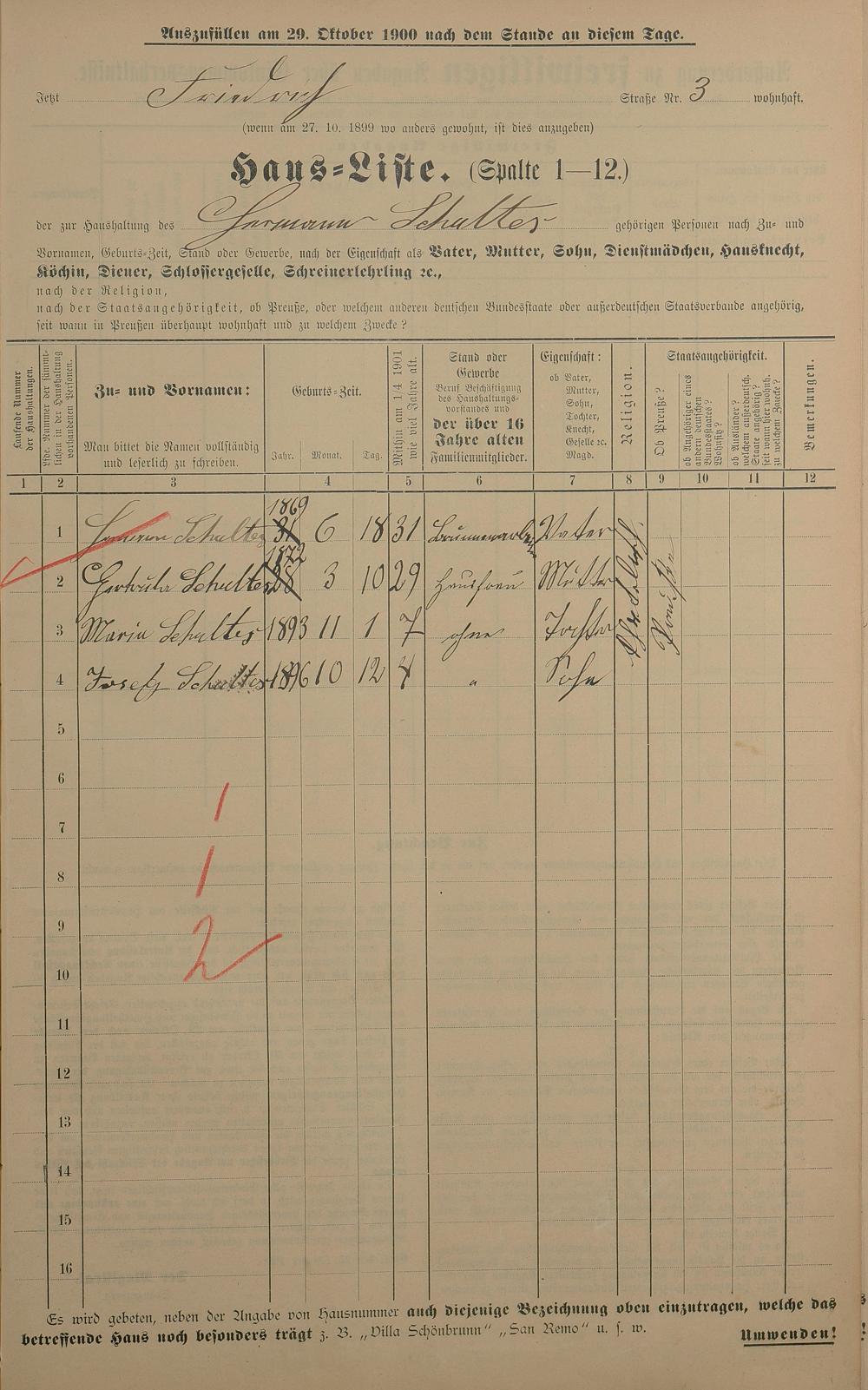 Personenstandsaufnahme zur Klassensteuerrolle für 1901