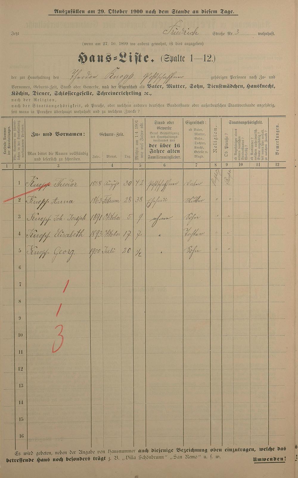 Personenstandsaufnahme zur Klassensteuerrolle für 1901