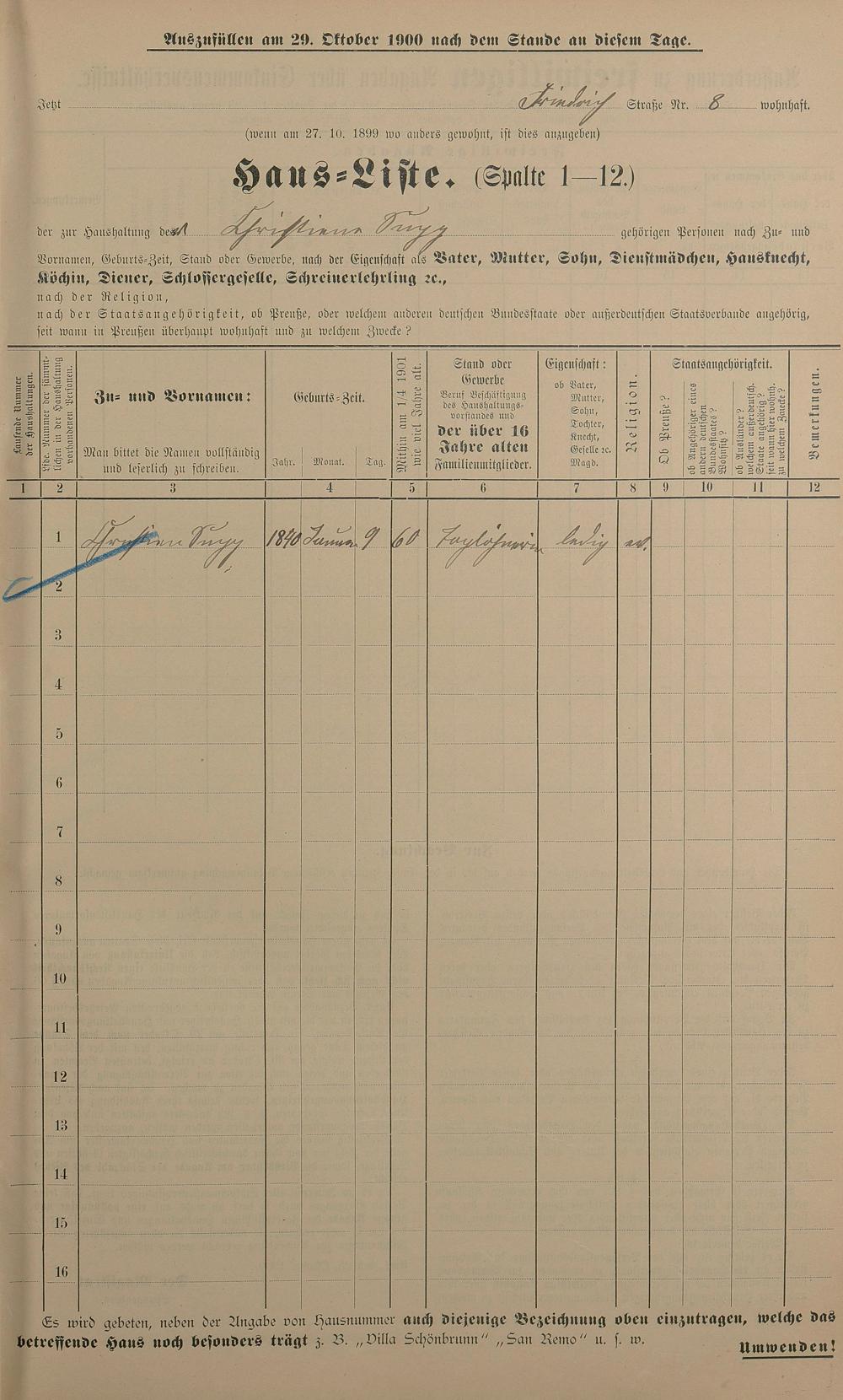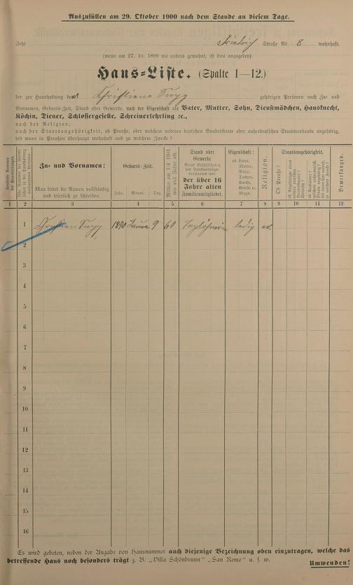 Personenstandsaufnahme zur Klassensteuerrolle für 1901
