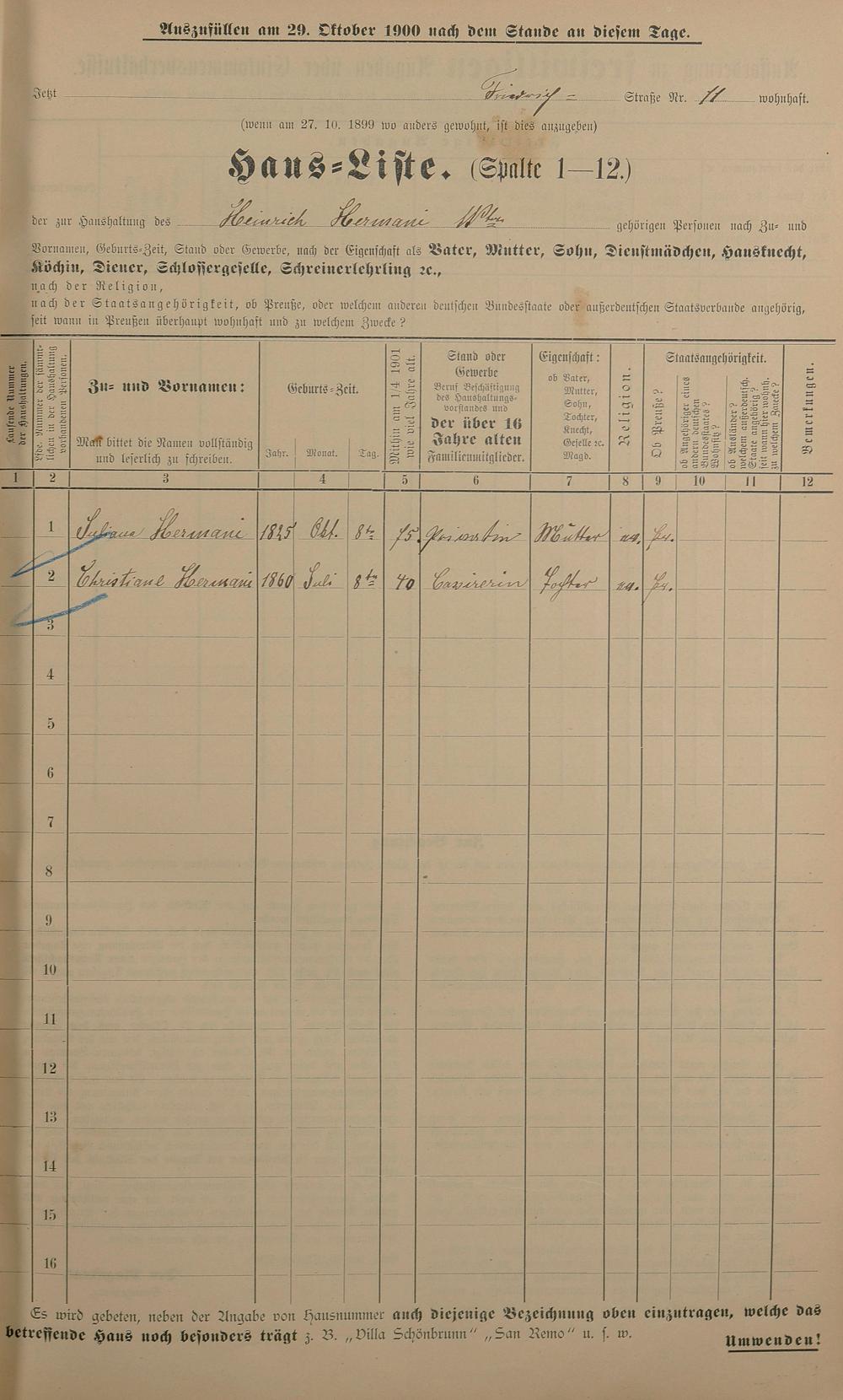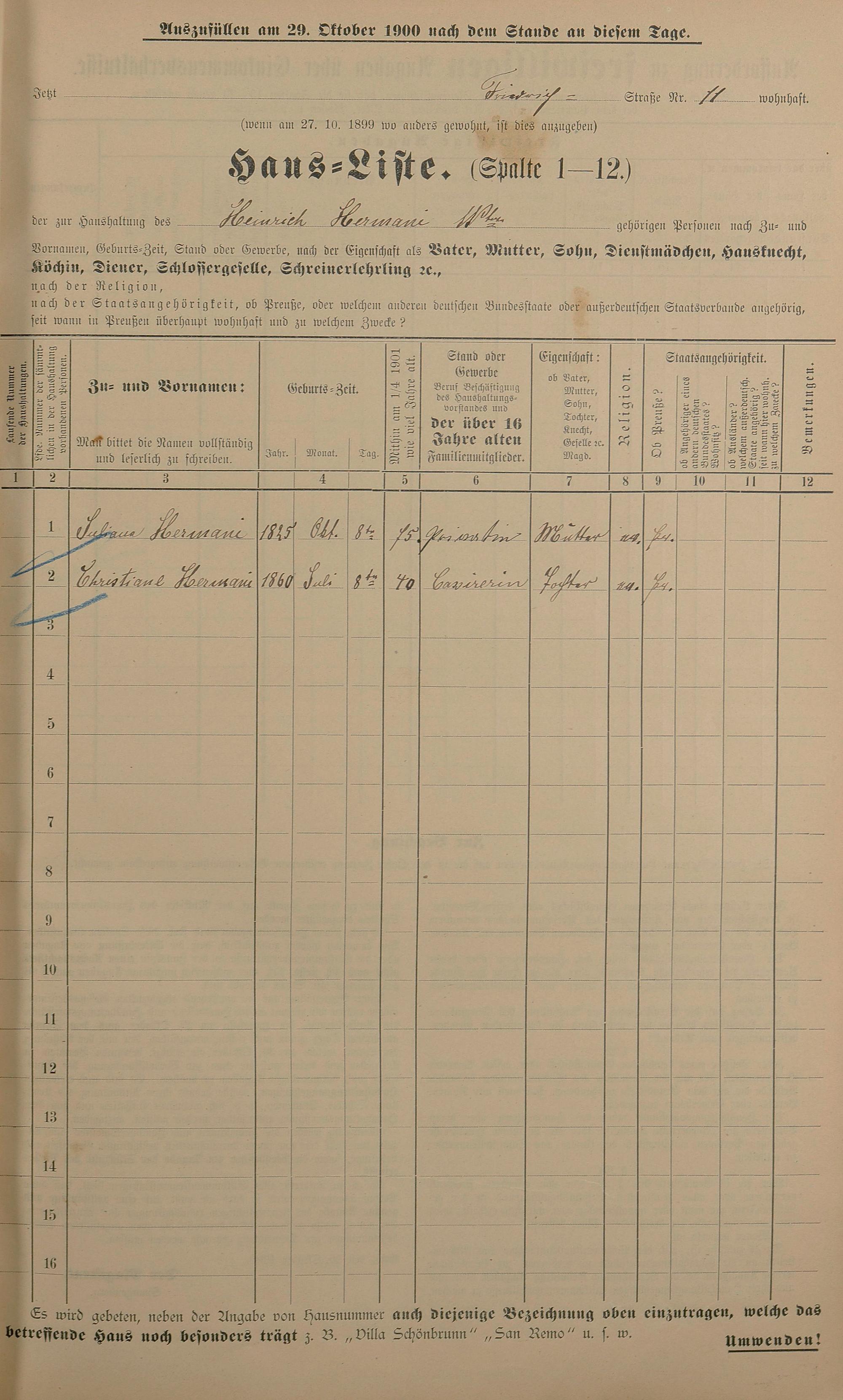 Personenstandsaufnahme zur Klassensteuerrolle für 1901