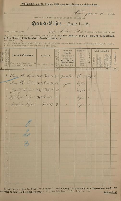 Personenstandsaufnahme zur Klassensteuerrolle für 1901