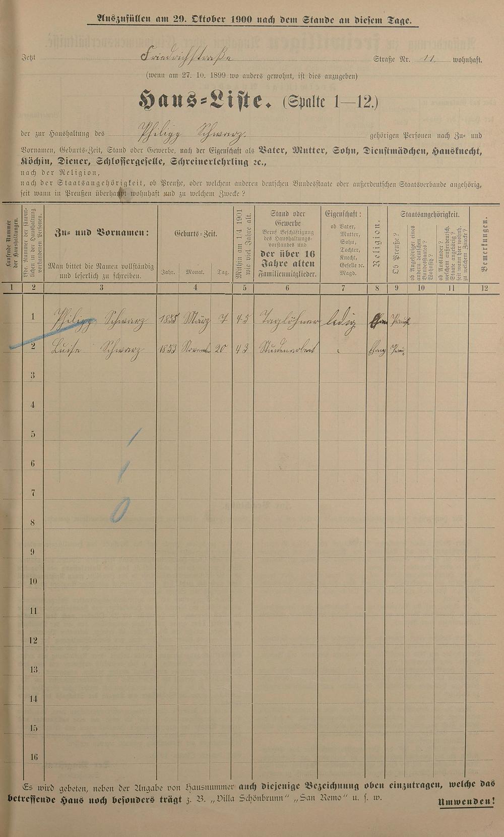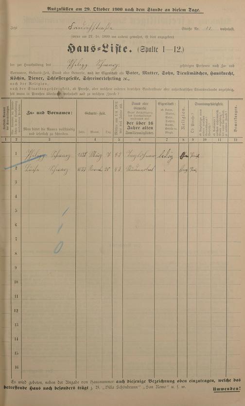 Personenstandsaufnahme zur Klassensteuerrolle für 1901