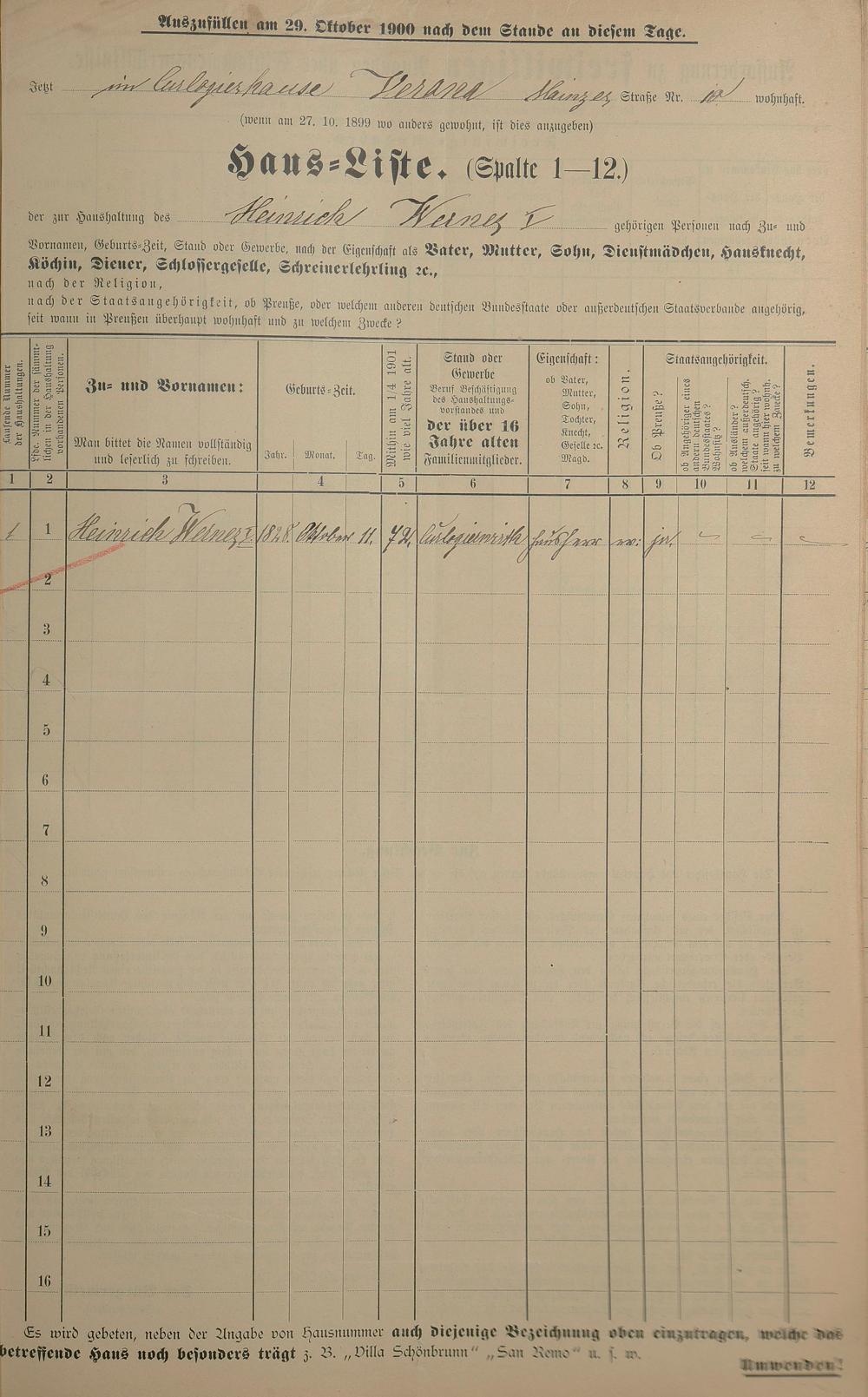 Personenstandsaufnahme zur Klassensteuerrolle für 1901