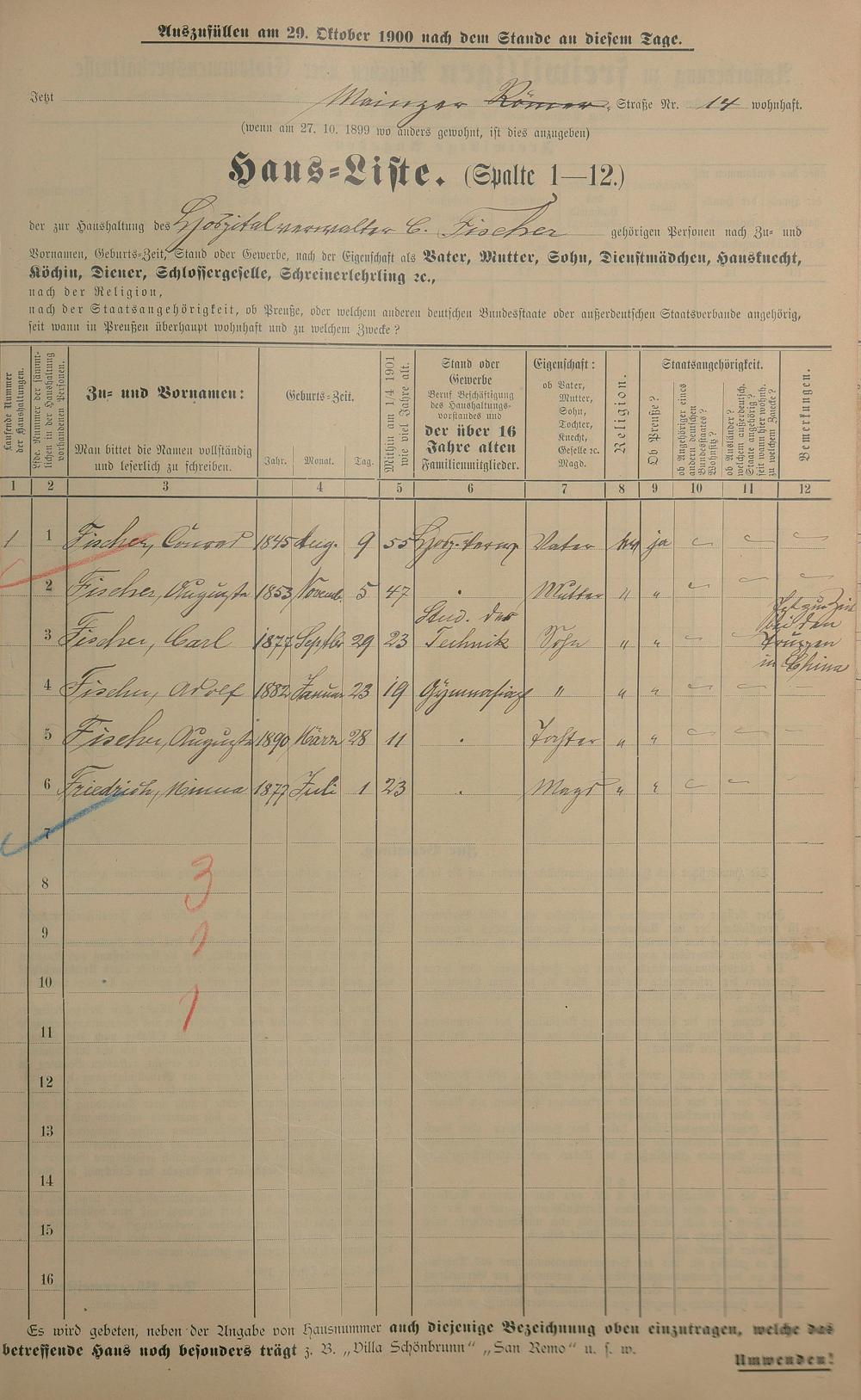 Personenstandsaufnahme zur Klassensteuerrolle für 1901