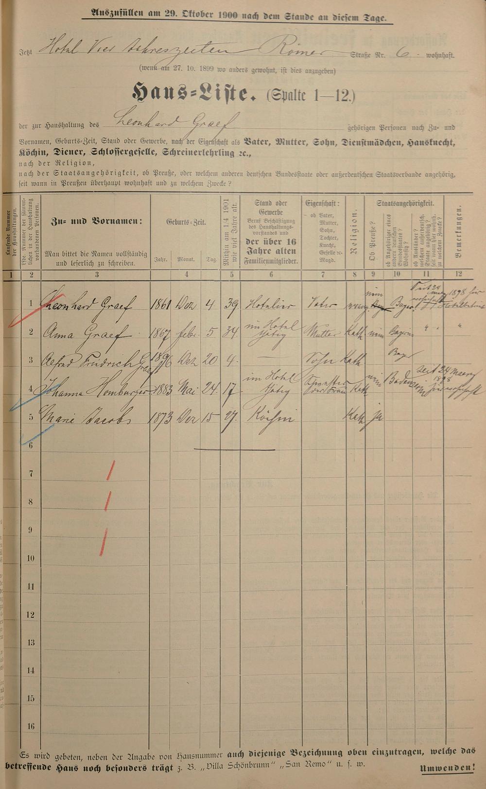 Personenstandsaufnahme zur Klassensteuerrolle für 1901
