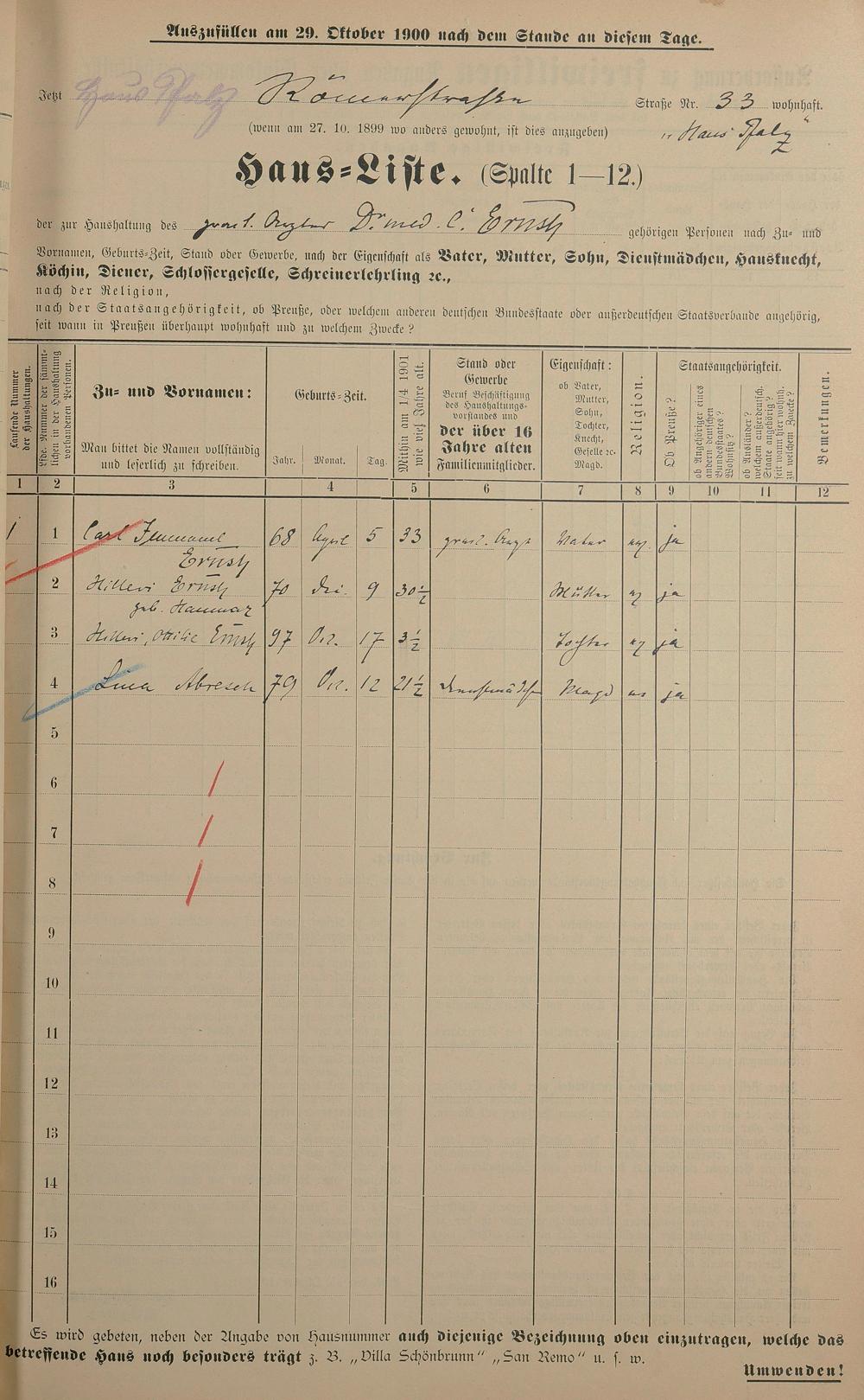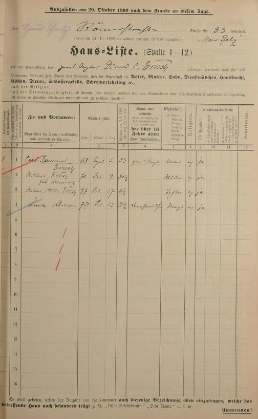 Personenstandsaufnahme zur Klassensteuerrolle für 1901