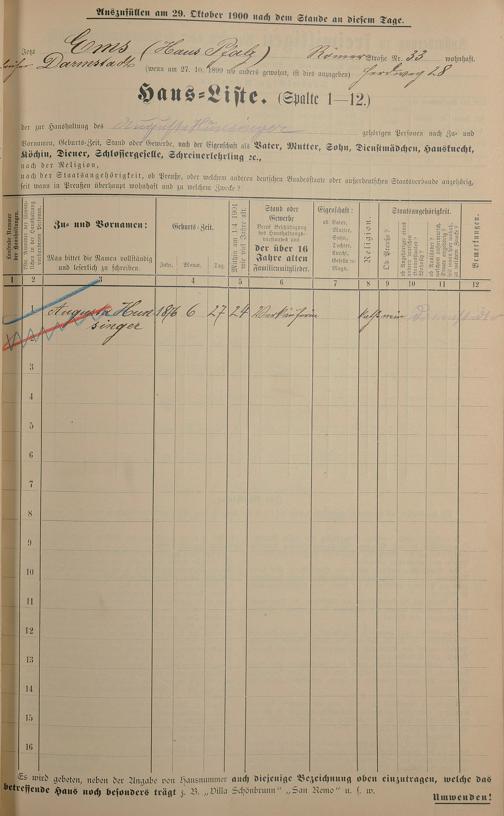 Personenstandsaufnahme zur Klassensteuerrolle für 1901