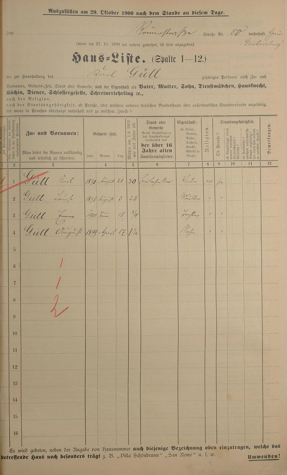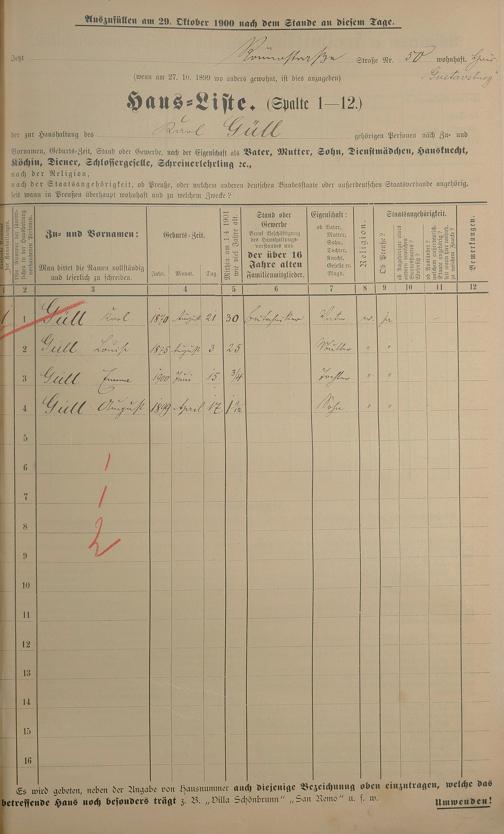 Personenstandsaufnahme zur Klassensteuerrolle für 1901