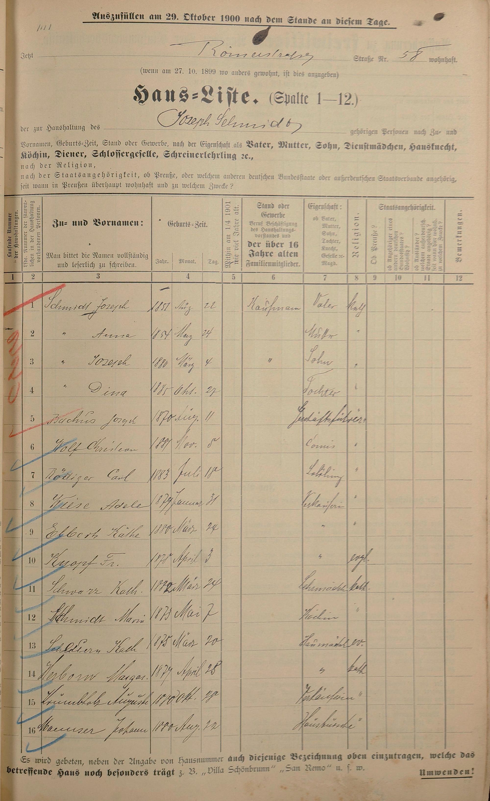Personenstandsaufnahme zur Klassensteuerrolle für 1901