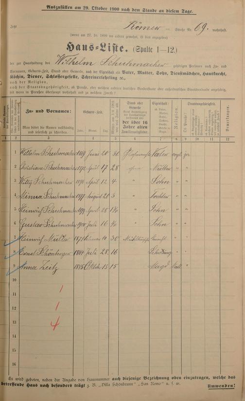 Personenstandsaufnahme zur Klassensteuerrolle für 1901