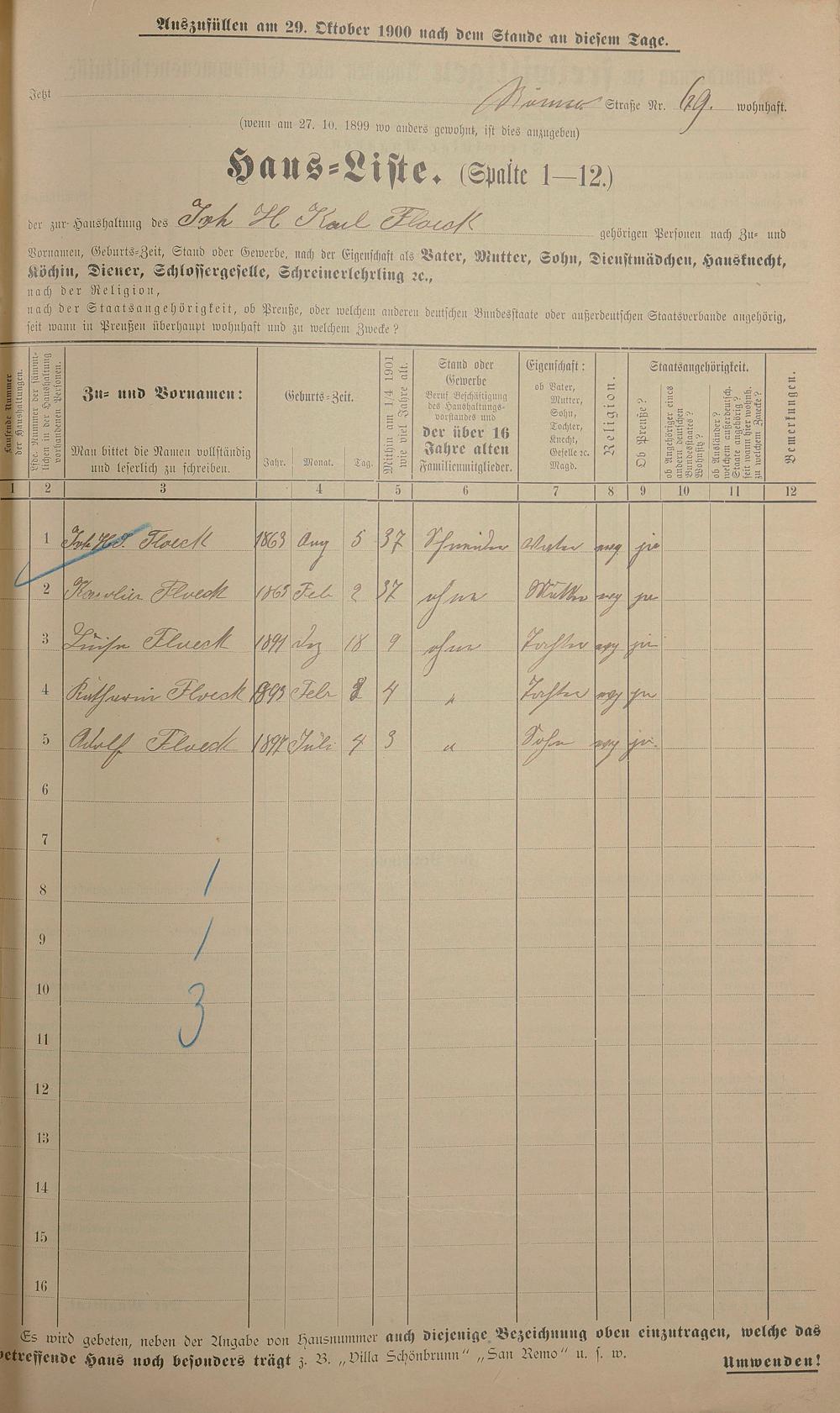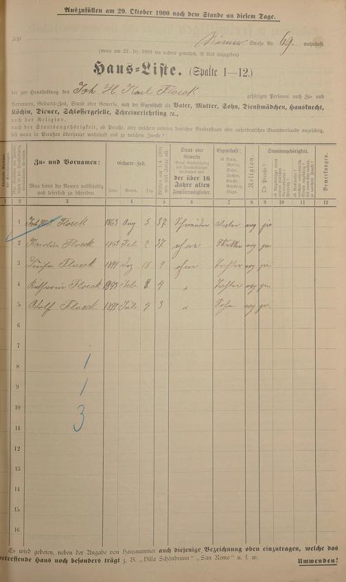 Personenstandsaufnahme zur Klassensteuerrolle für 1901