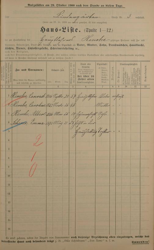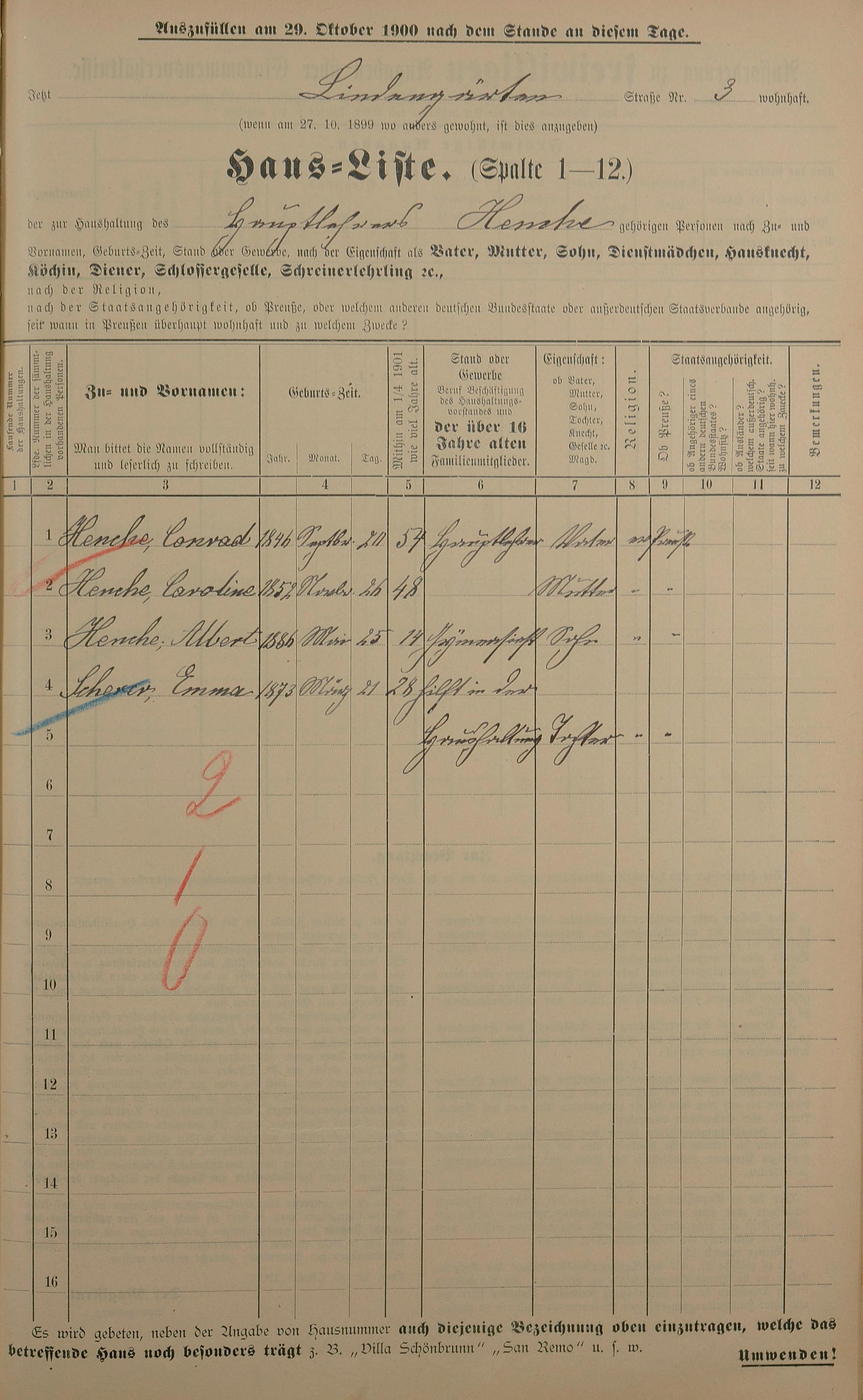 Personenstandsaufnahme zur Klassensteuerrolle für 1901