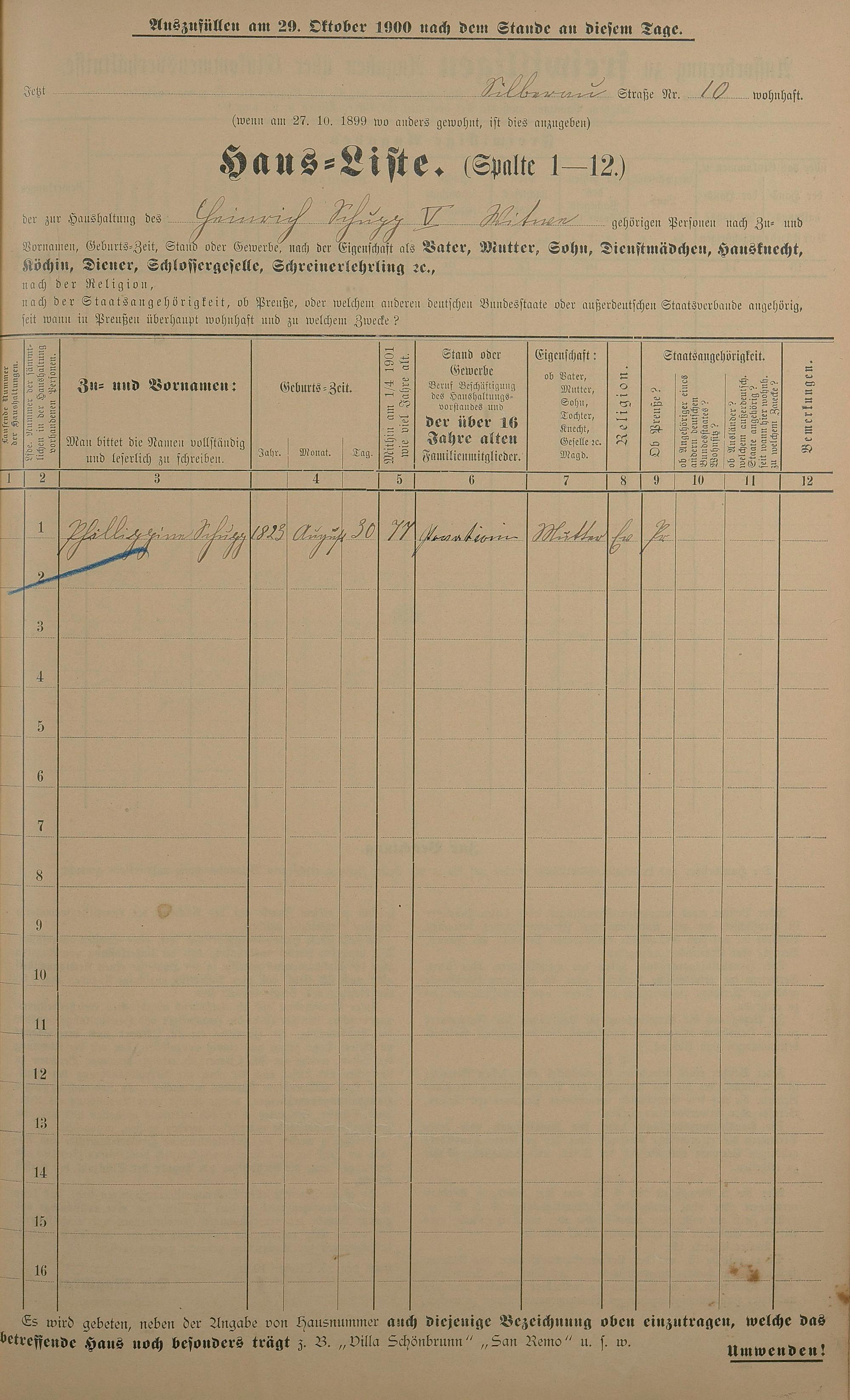 Personenstandsaufnahme zur Klassensteuerrolle für 1901
