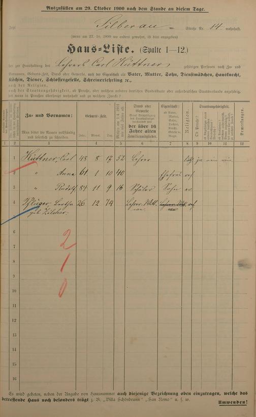 Personenstandsaufnahme zur Klassensteuerrolle für 1901