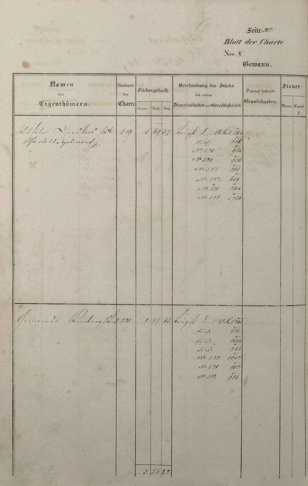 Lagerbuch 1839 aufgestellt von Geometer Gottschalk Nr. 1 - 798