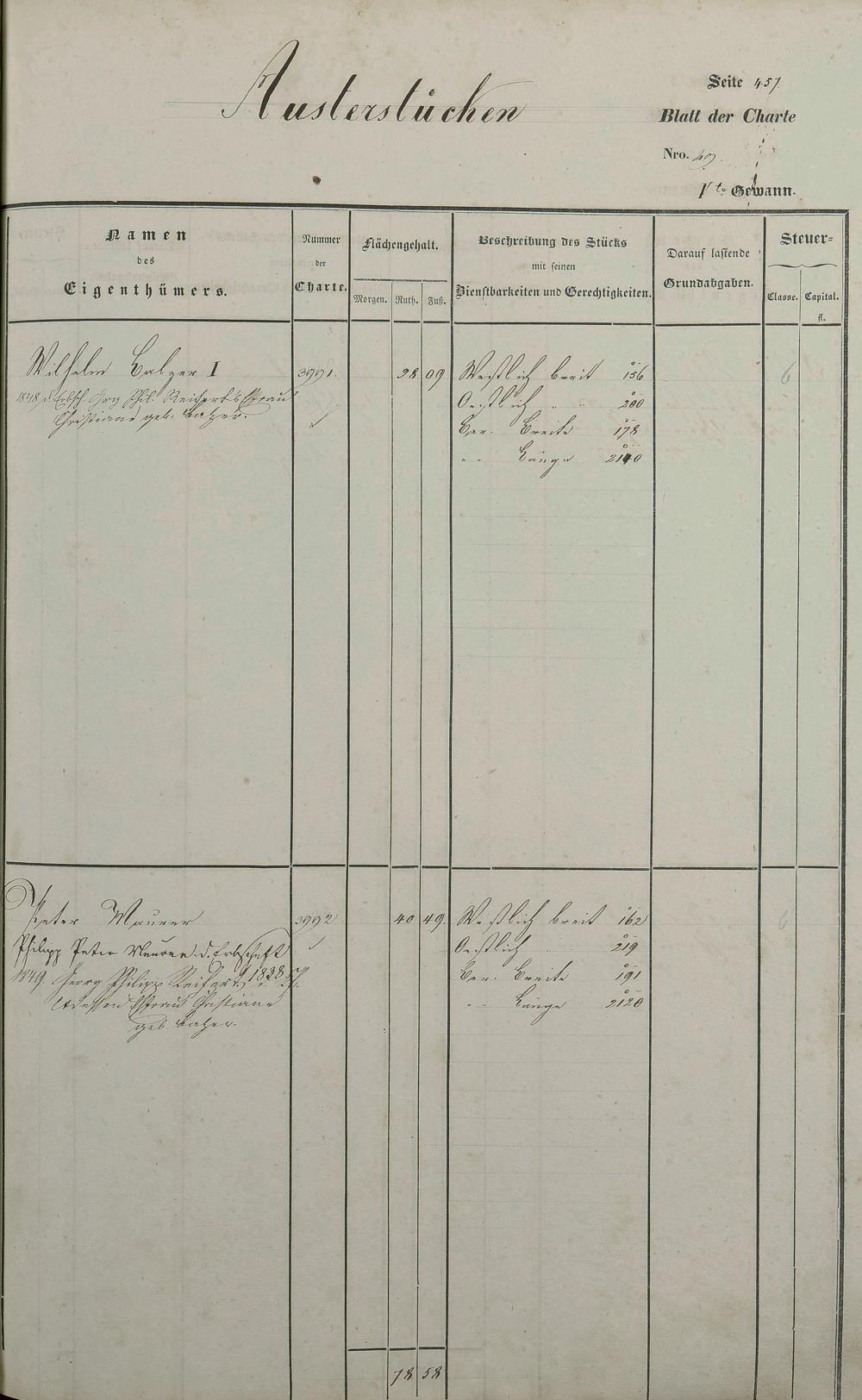 Lagerbuch 1838 aufgestellt von Geometer Gottschalk Nr. 3178 - 4174