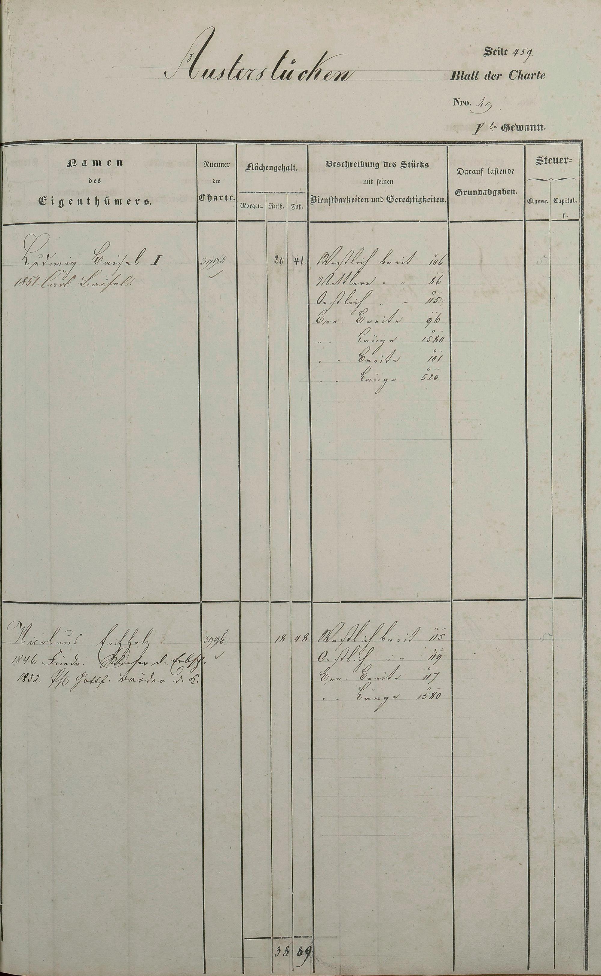 Lagerbuch 1838 aufgestellt von Geometer Gottschalk Nr. 3178 - 4174