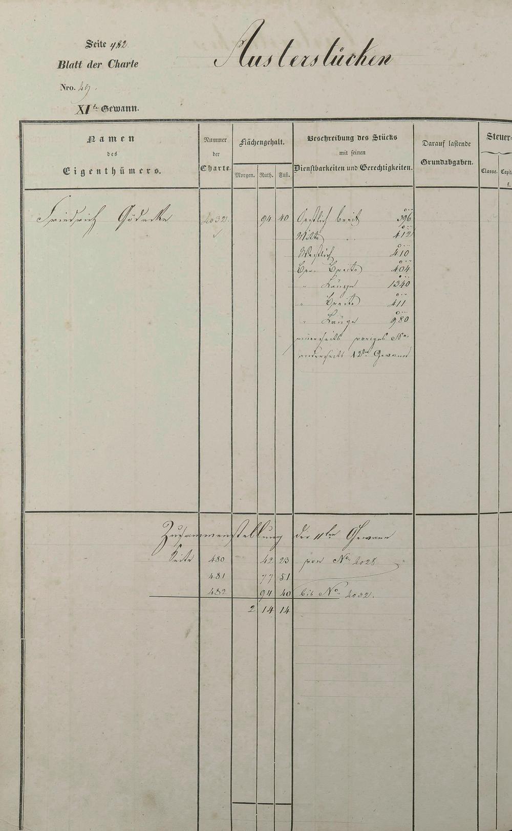 Lagerbuch 1838 aufgestellt von Geometer Gottschalk Nr. 3178 - 4174