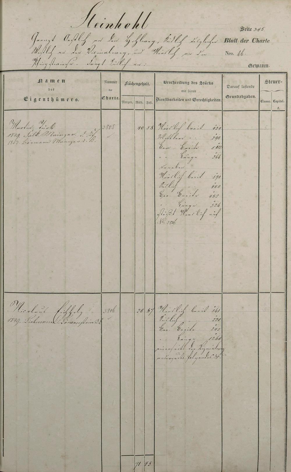 Lagerbuch 1838 aufgestellt von Geometer Gottschalk Nr. 3178 - 4174