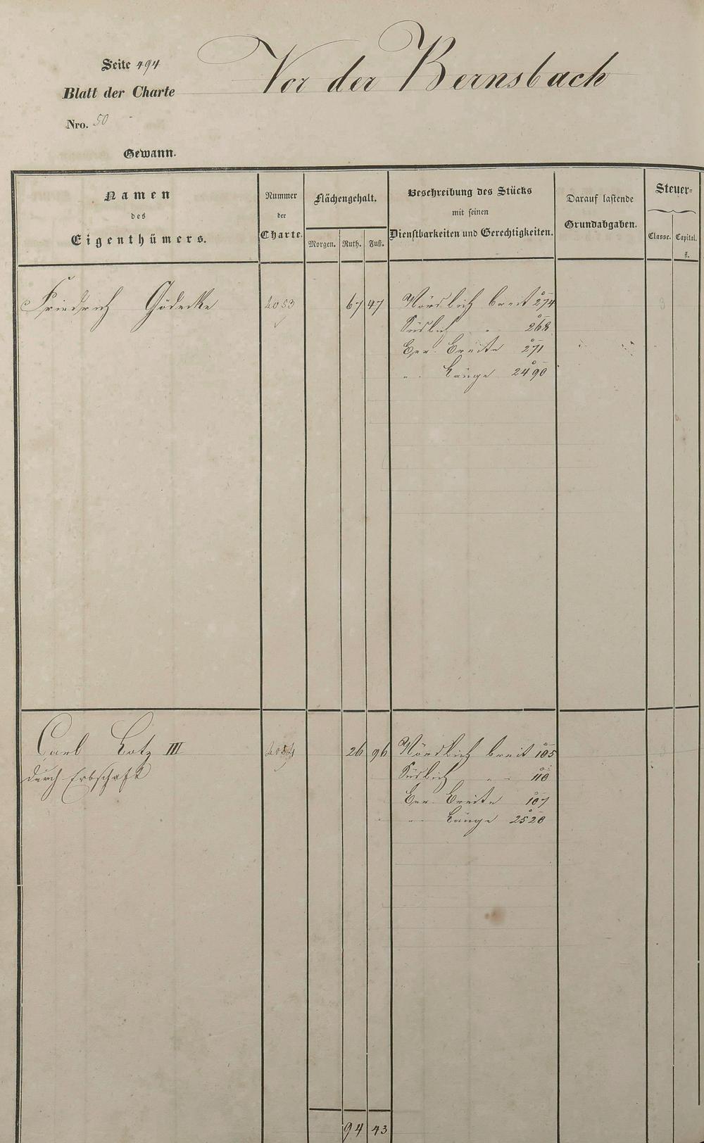 Lagerbuch 1838 aufgestellt von Geometer Gottschalk Nr. 3178 - 4174