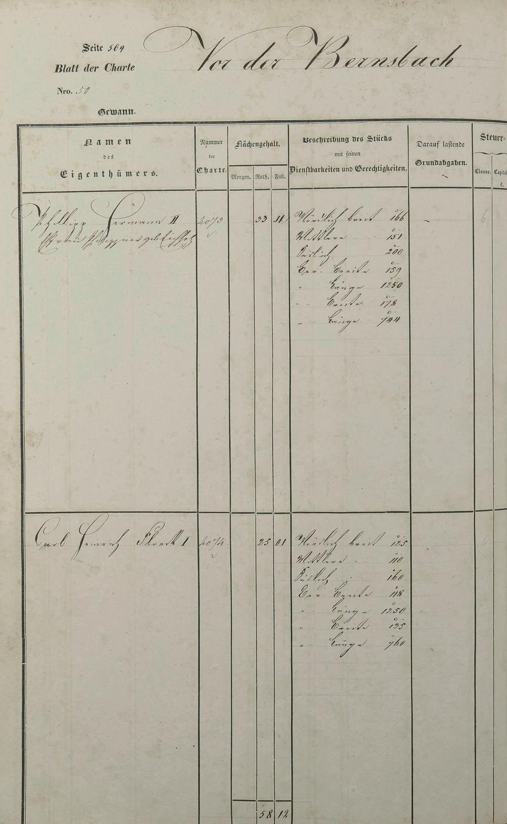 Lagerbuch 1838 aufgestellt von Geometer Gottschalk Nr. 3178 - 4174