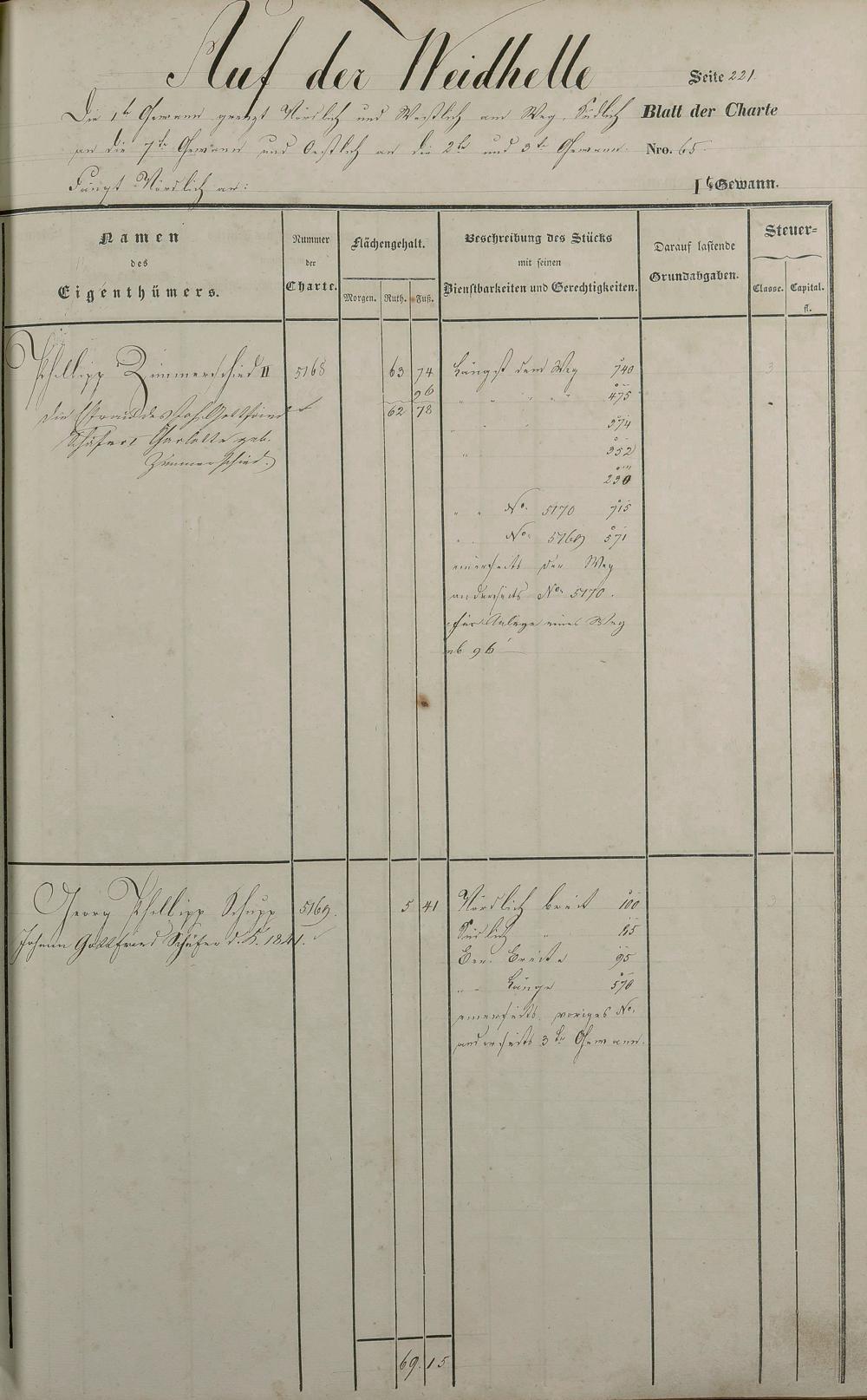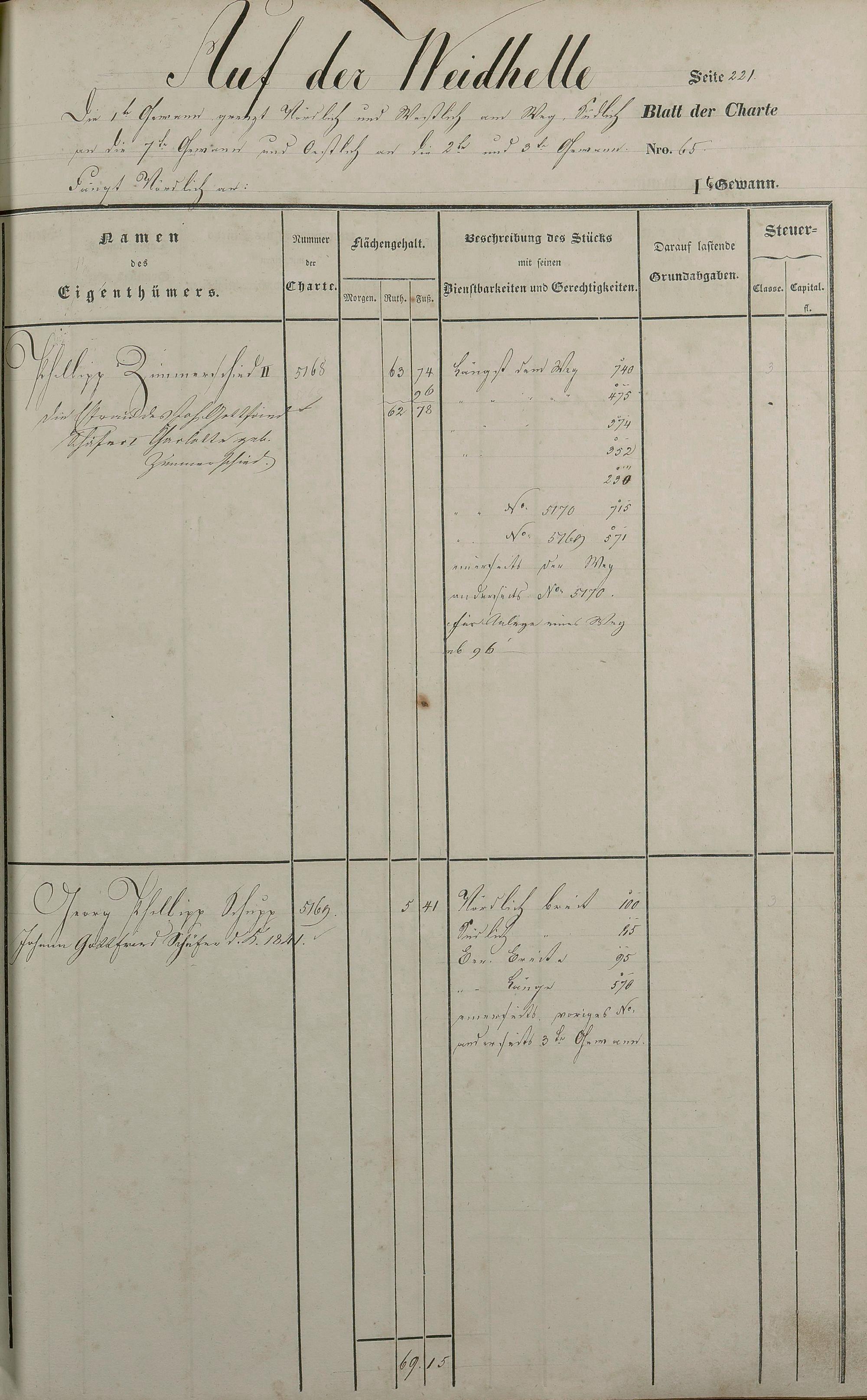 Lagerbuch 1838 aufgestellt von Geometer Gottschalk Nr. 4771 - 5861