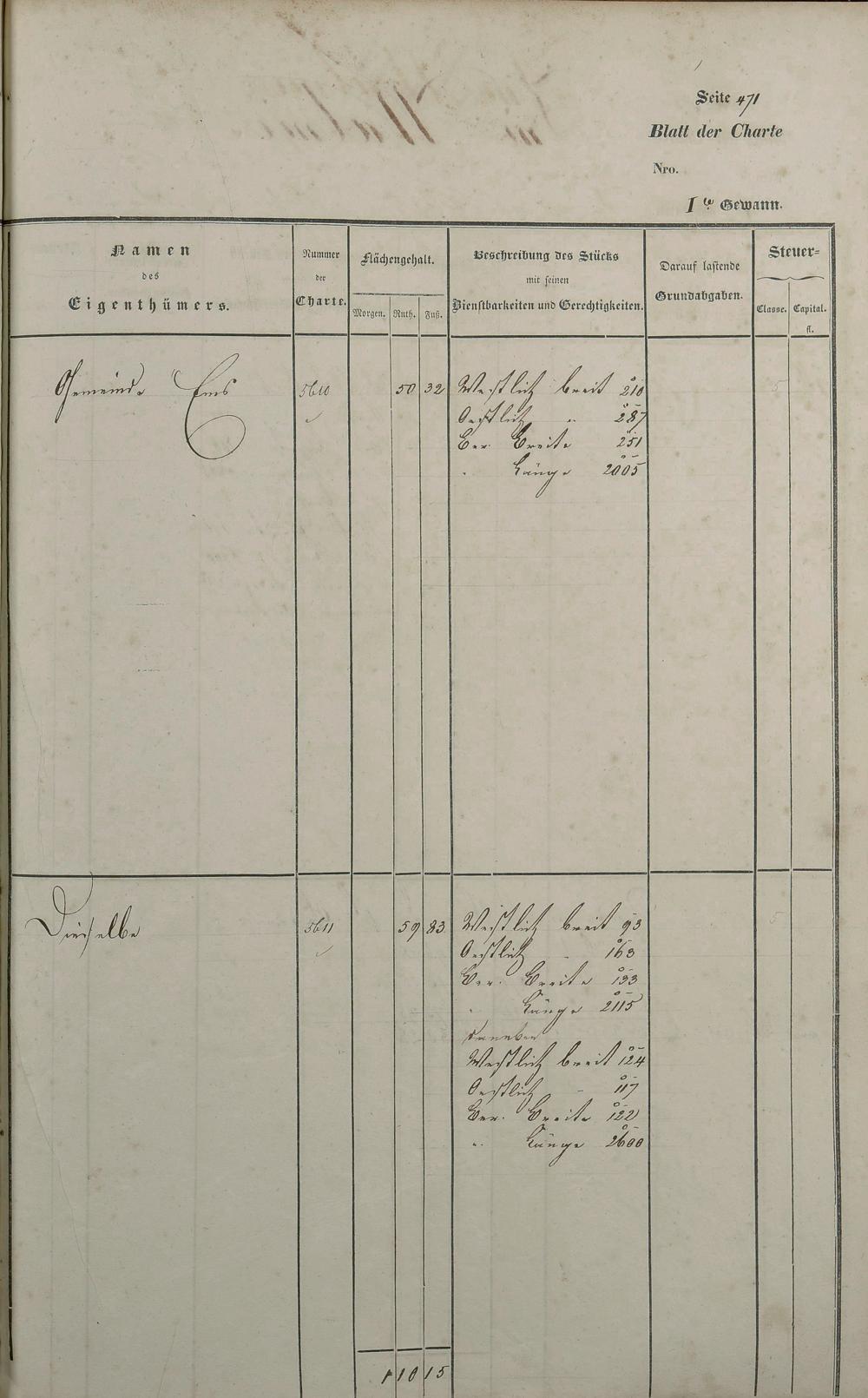 Lagerbuch 1838 aufgestellt von Geometer Gottschalk Nr. 4771 - 5861
