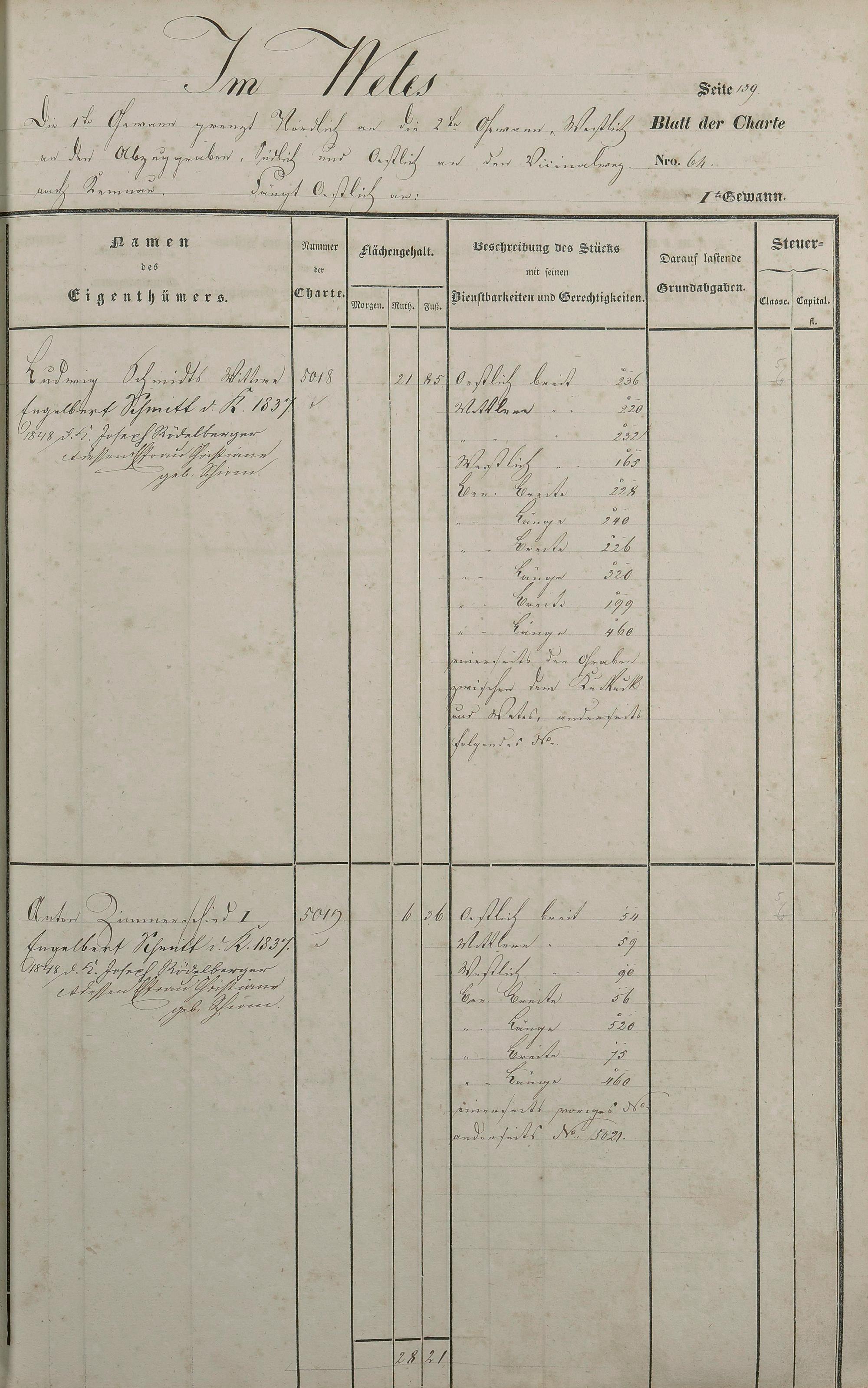 Lagerbuch 1838 aufgestellt von Geometer Gottschalk Nr. 4771 - 5861