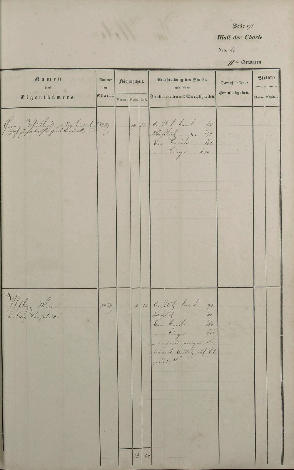 Lagerbuch 1838 aufgestellt von Geometer Gottschalk Nr. 4771 - 5861