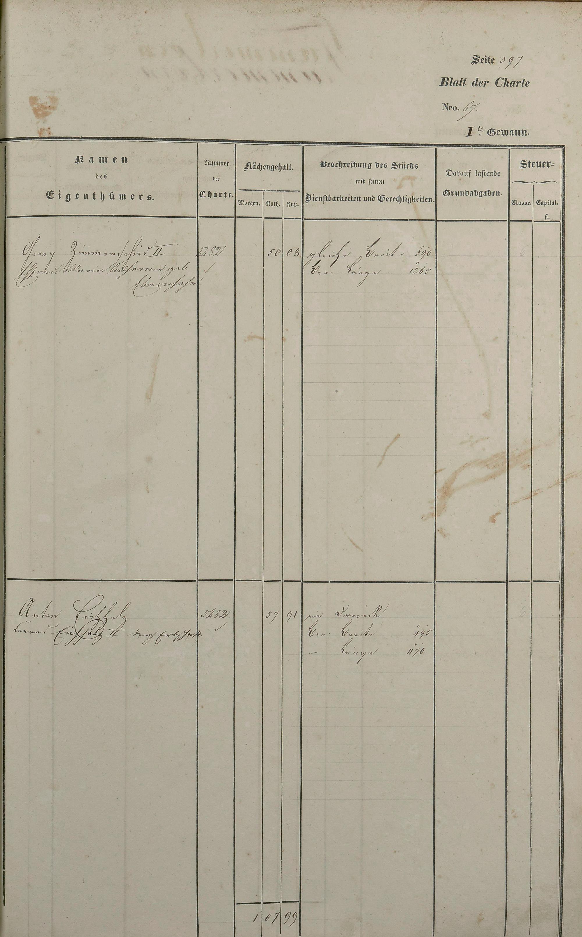 Lagerbuch 1838 aufgestellt von Geometer Gottschalk Nr. 4771 - 5861