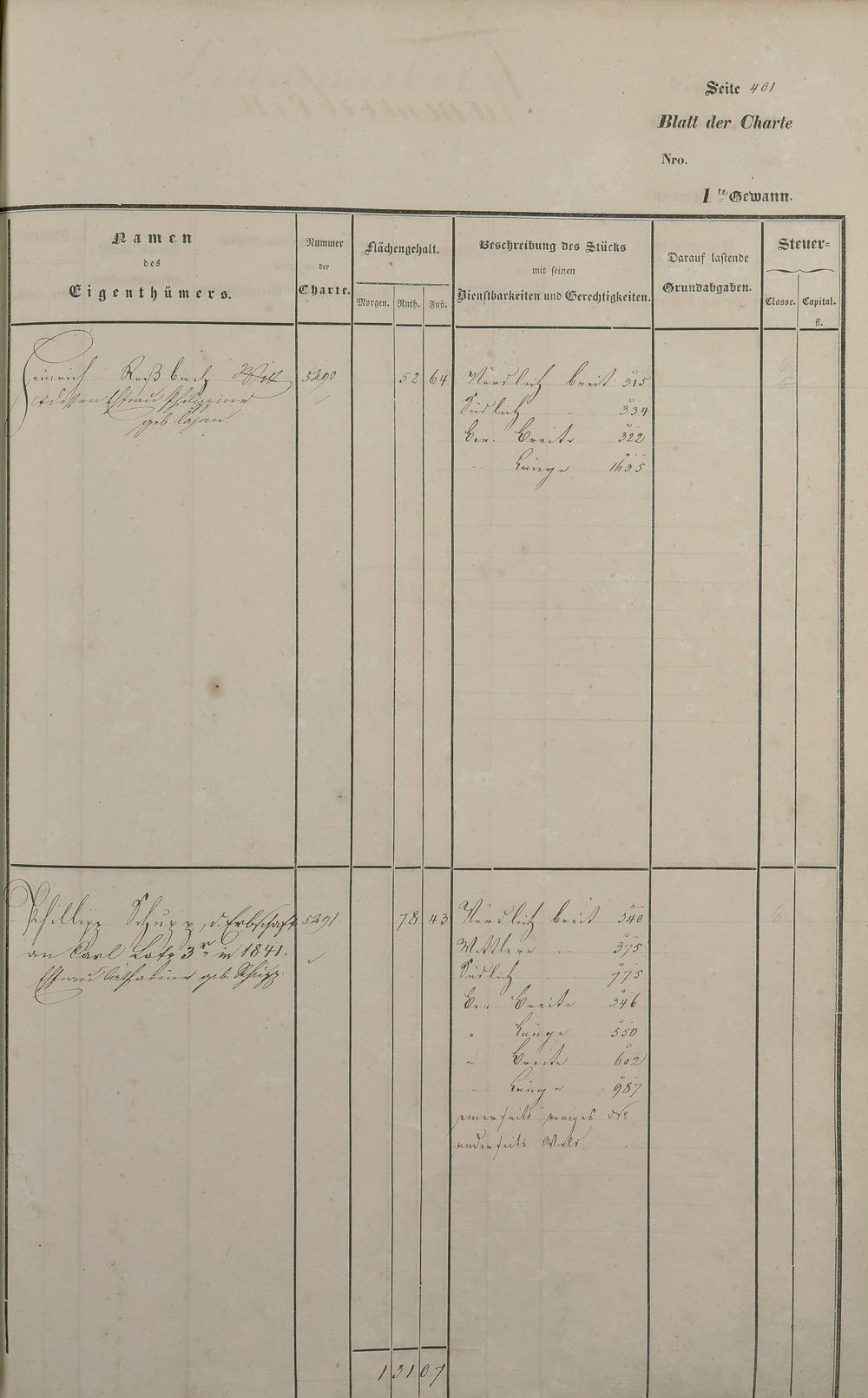 Lagerbuch 1838 aufgestellt von Geometer Gottschalk Nr. 4771 - 5861
