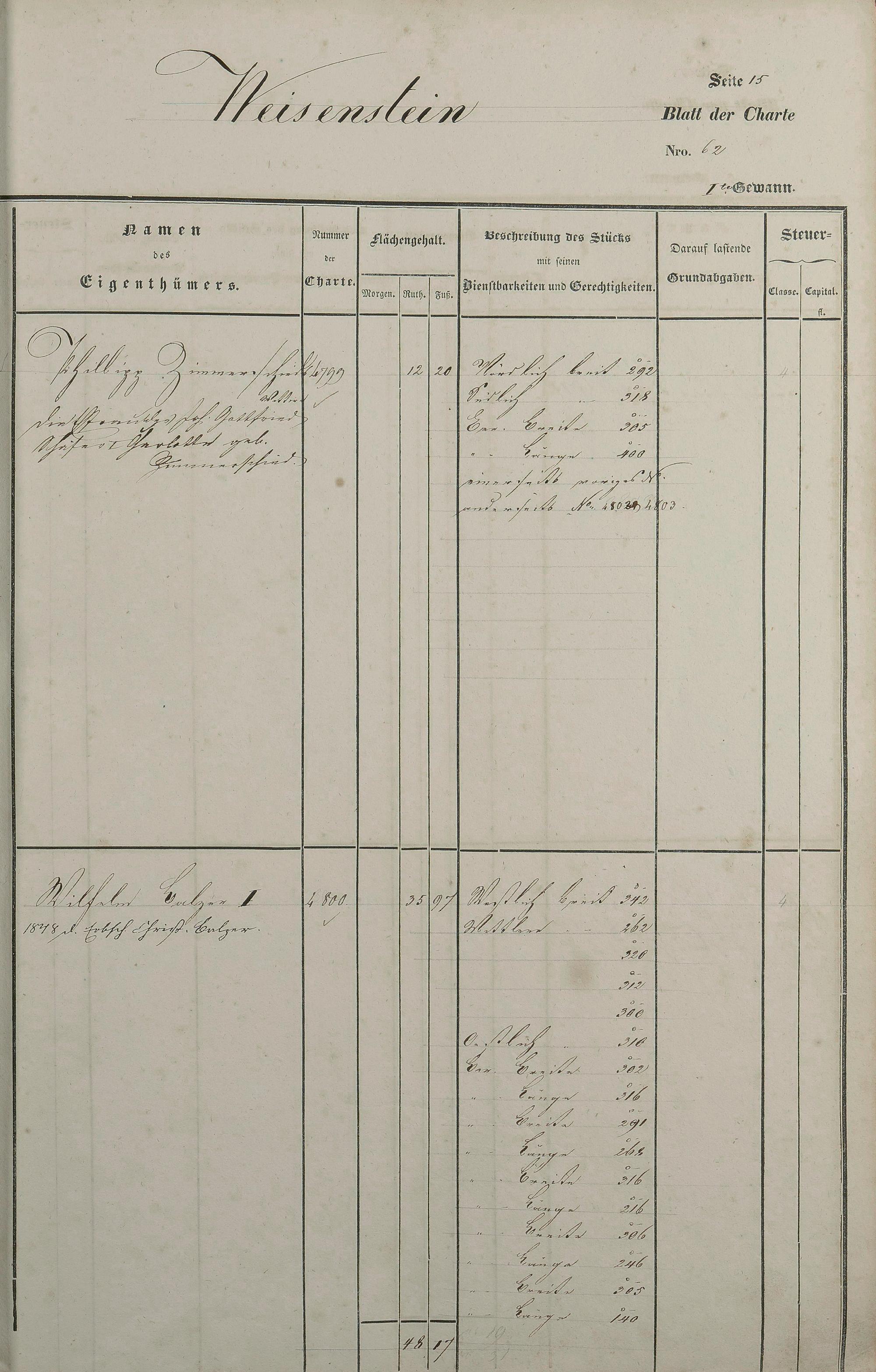 Lagerbuch 1838 aufgestellt von Geometer Gottschalk Nr. 4771 - 5861