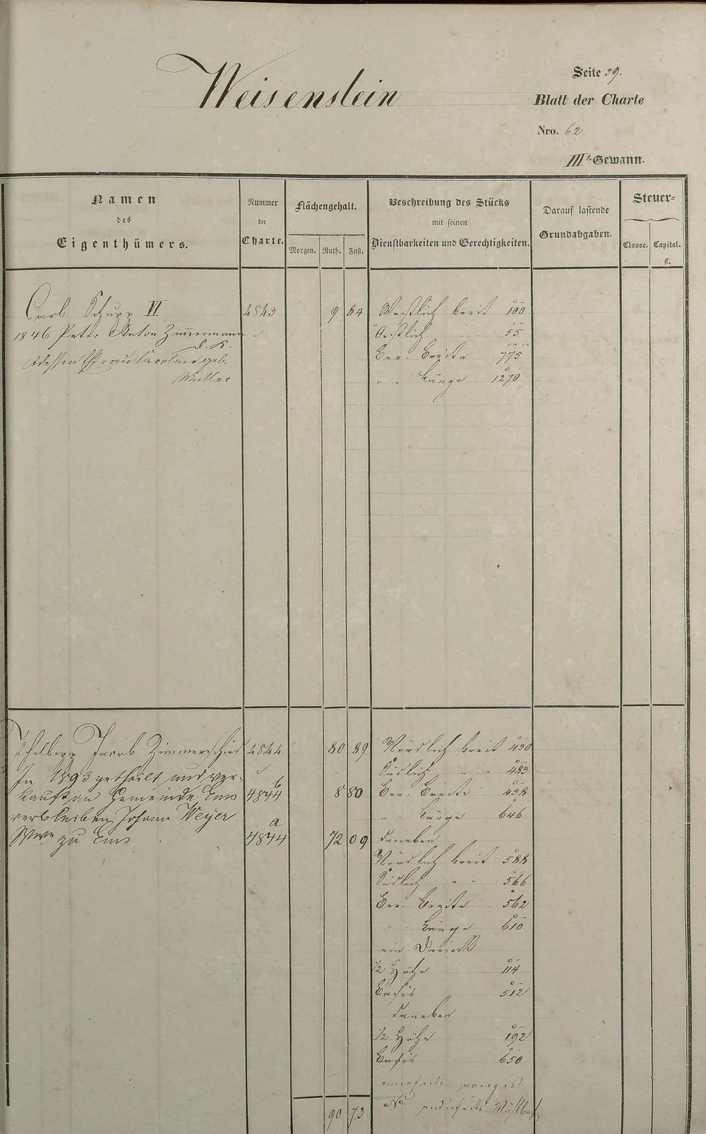 Lagerbuch 1838 aufgestellt von Geometer Gottschalk Nr. 4771 - 5861