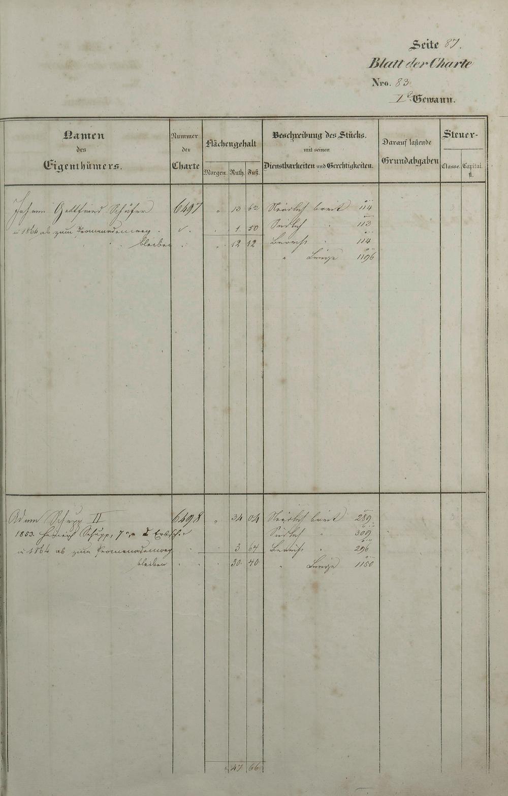 Lagerbuch 1838 aufgestellt von Geometer Gottschalk Nr. 6350 - 7107