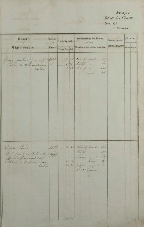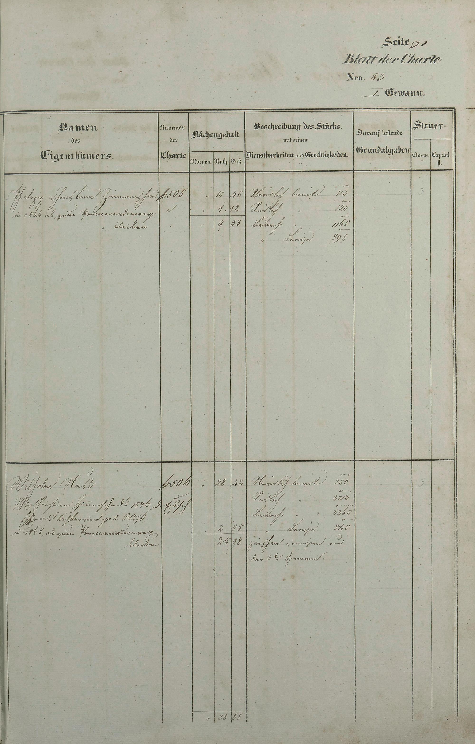 Lagerbuch 1838 aufgestellt von Geometer Gottschalk Nr. 6350 - 7107