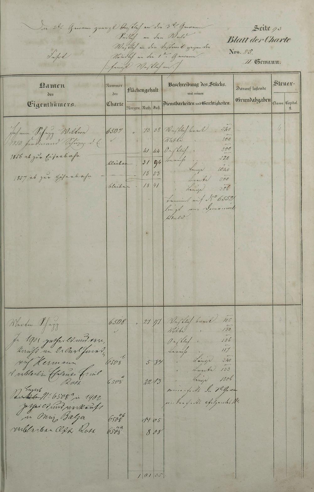 Lagerbuch 1838 aufgestellt von Geometer Gottschalk Nr. 6350 - 7107