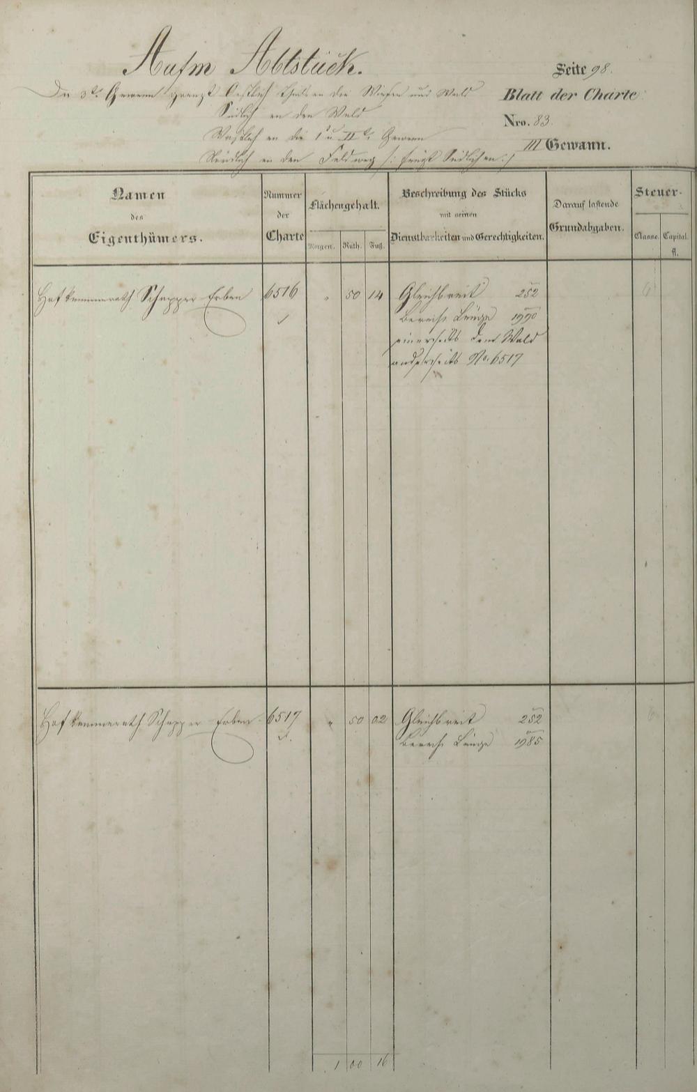 Lagerbuch 1838 aufgestellt von Geometer Gottschalk Nr. 6350 - 7107