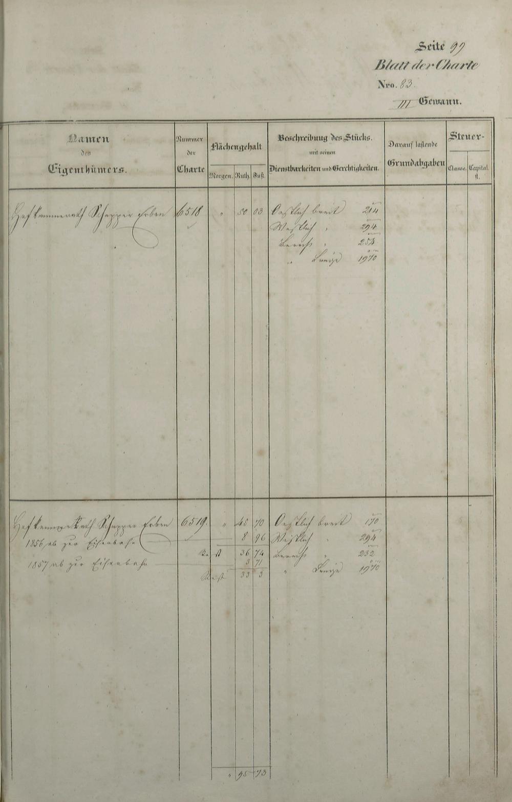 Lagerbuch 1838 aufgestellt von Geometer Gottschalk Nr. 6350 - 7107