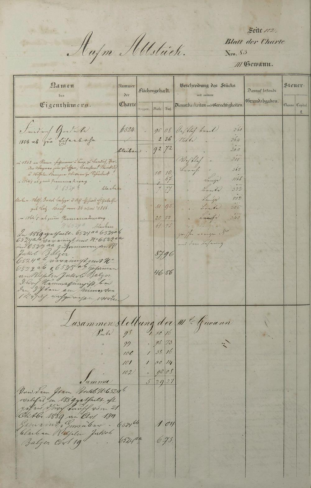 Lagerbuch 1838 aufgestellt von Geometer Gottschalk Nr. 6350 - 7107
