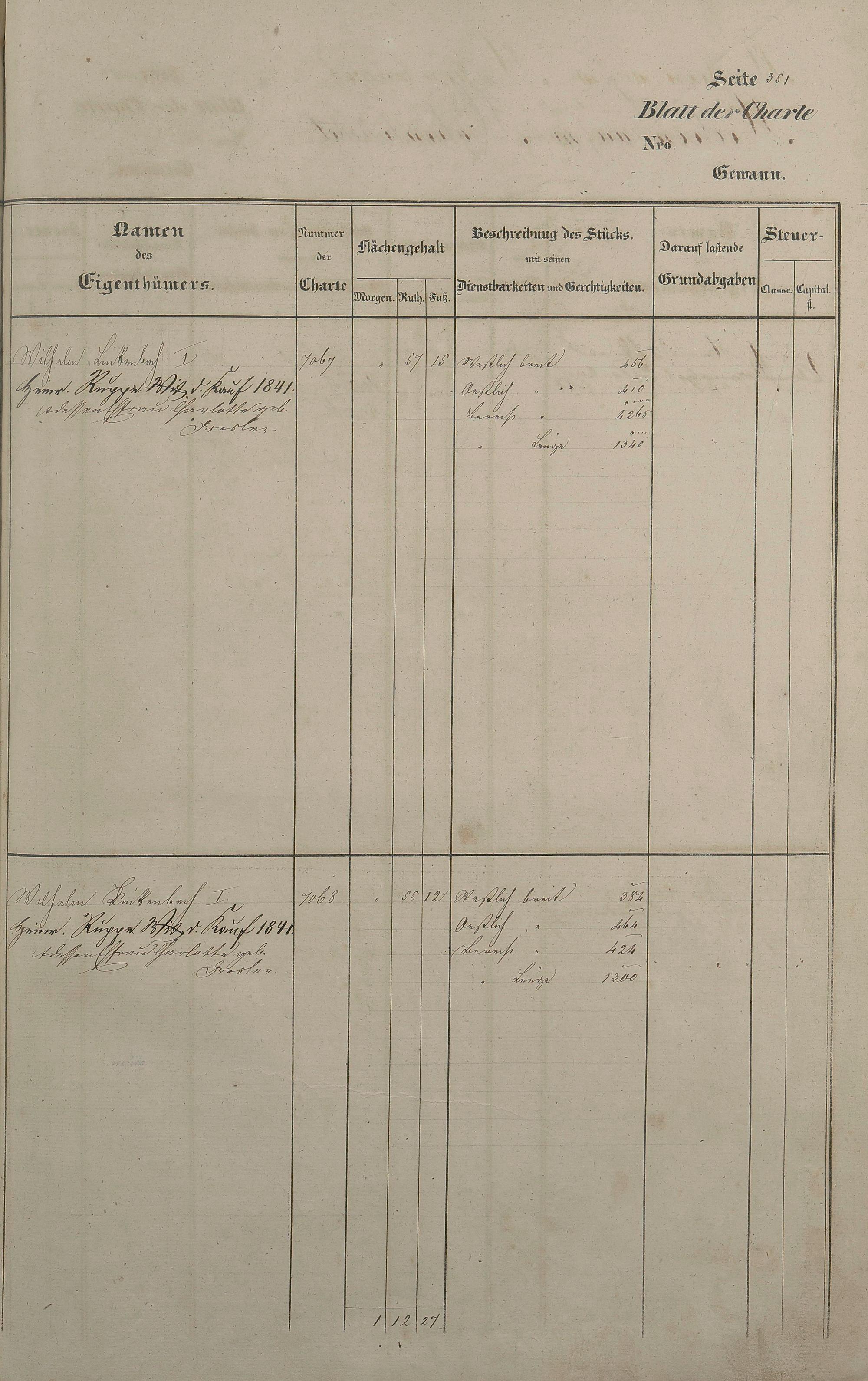 Lagerbuch 1838 aufgestellt von Geometer Gottschalk Nr. 6350 - 7107