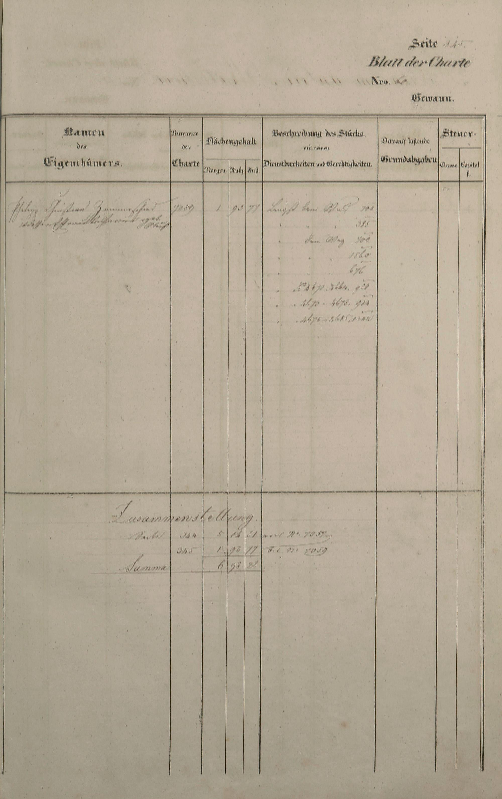 Lagerbuch 1838 aufgestellt von Geometer Gottschalk Nr. 6350 - 7107