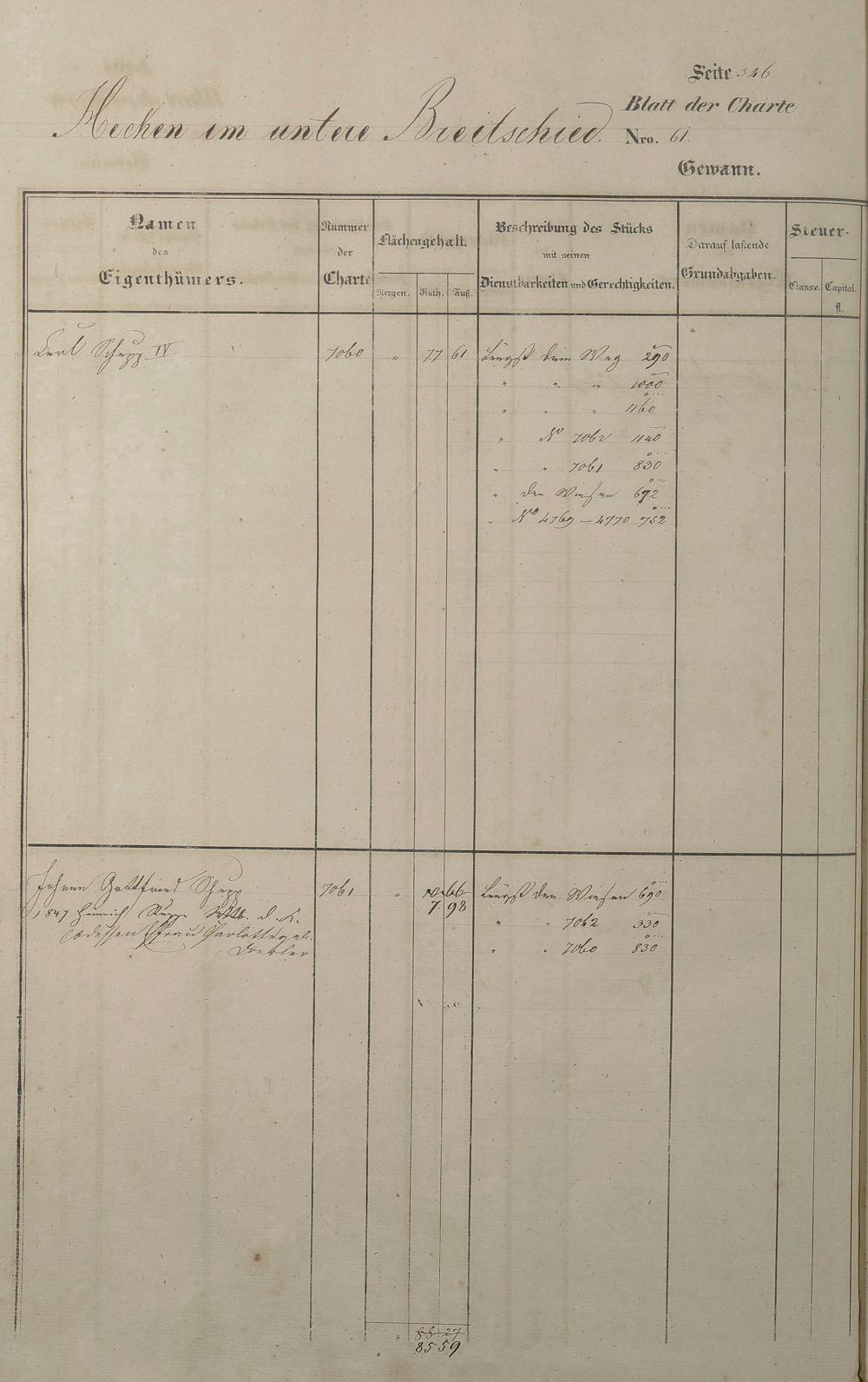 Lagerbuch 1838 aufgestellt von Geometer Gottschalk Nr. 6350 - 7107