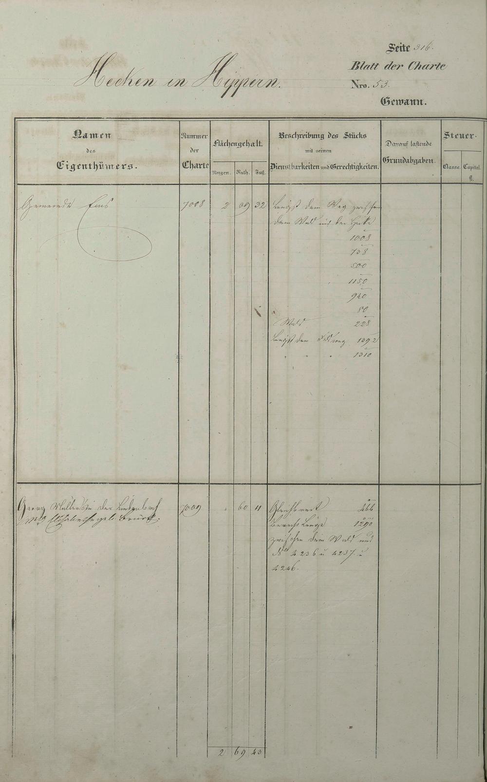 Lagerbuch 1838 aufgestellt von Geometer Gottschalk Nr. 6350 - 7107