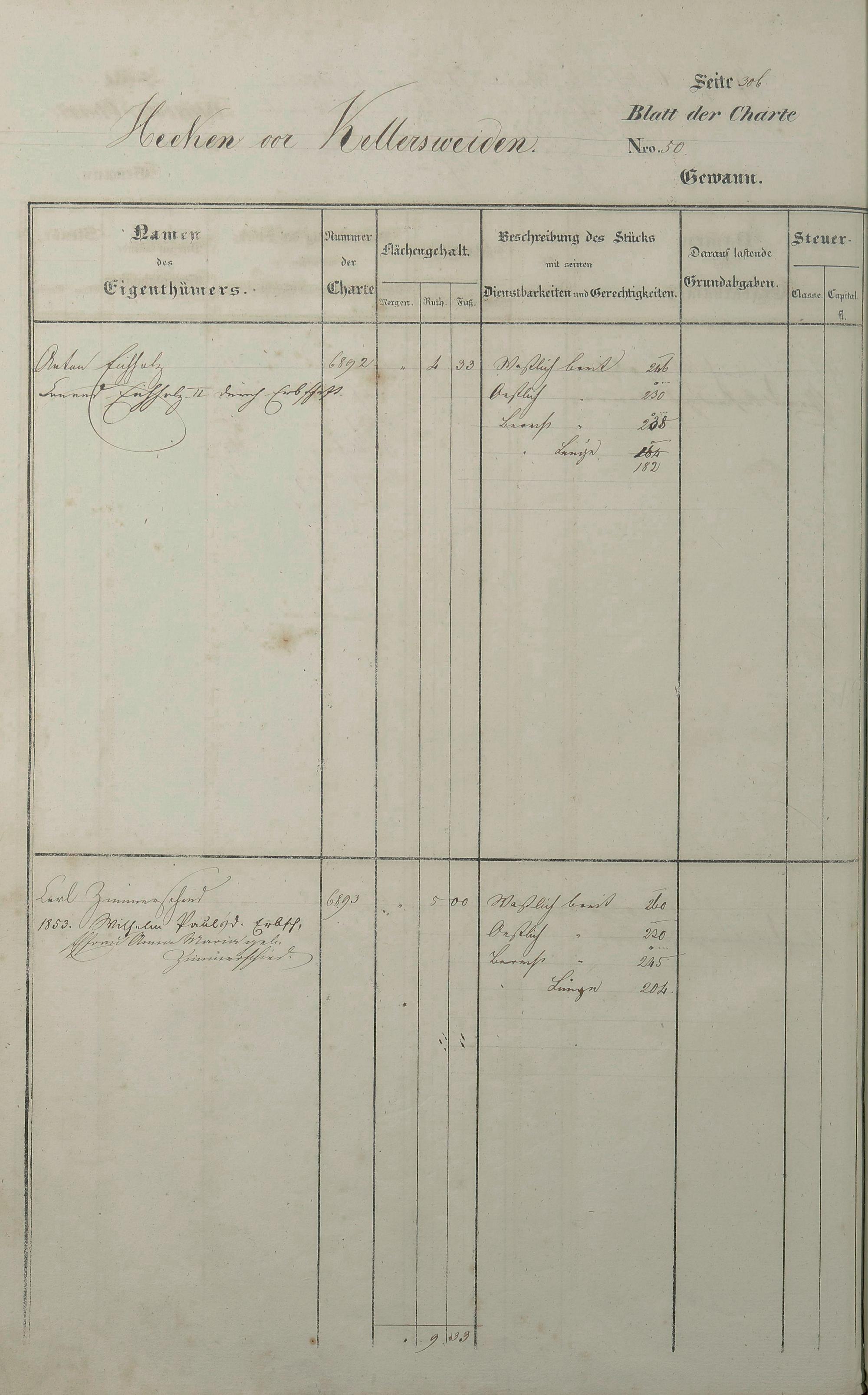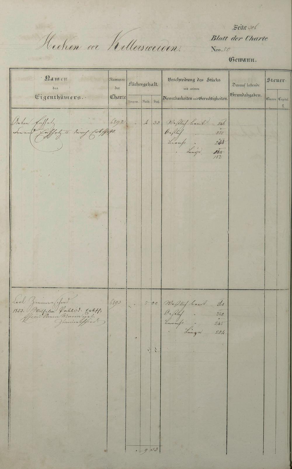 Lagerbuch 1838 aufgestellt von Geometer Gottschalk Nr. 6350 - 7107