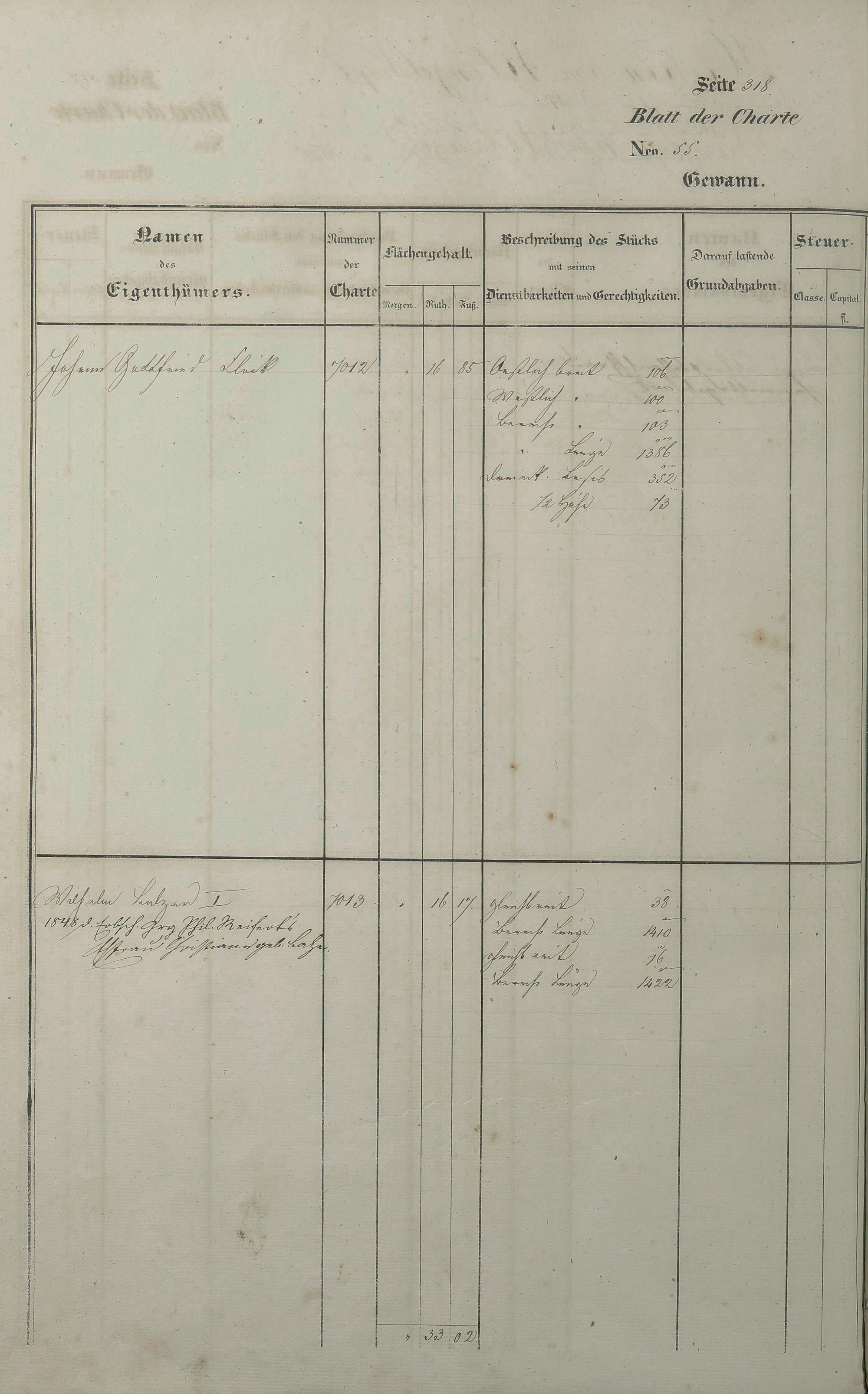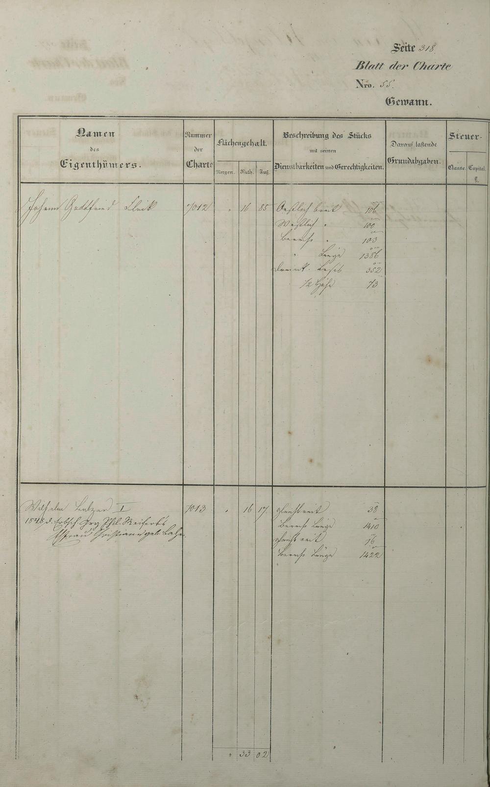 Lagerbuch 1838 aufgestellt von Geometer Gottschalk Nr. 6350 - 7107